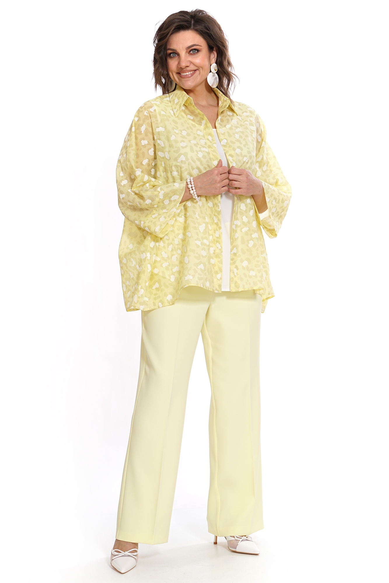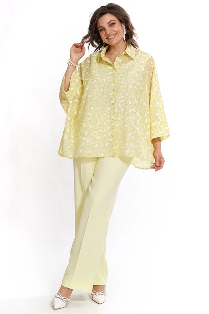 Костюм брючный 2530 желтый ALANI — идеальный выбор для стильных и современных женщин. Коллекция бренда ALANI сочетает в себе непринужденность и элегантность в одном комплекте. Костюм состоит из прямого, свободного блузона и брюк прямого силуэта. Выполнен из легкой ткани с 62% вискозы, что делает его идеальным для комфортного ношения в весенне-летний сезон. Блузон отличается стояче отложным воротником и цельнокроеными рукавами с манжетами, что добавляет нотку классики. Брюки оснащены поясом на резинке по бокам и застежкой на молнию, что обеспечивает удобство и свободу движений. Яркий желтый цвет костюма привнесет солнечное настроение в ваш образ, а его универсальный стиль подойдет как для повседневных прогулок, так и для более официальных мероприятий.