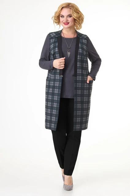 Модель в стиле casual – многослойность, простота силуэта и непринужденность сочетаний. Удлиненный жилет прямого кроя подойдет женщинам с любой фигурой, главное его преимущество – это способность стройнить и вытягивать силуэт. Линию борта поддерживает однотонная вставка с декоративной застежкой в виде ремешка. Плечевой пояс оформлен кокетками, игра клетки и наклонные вытачки придают легкую динамичность образу. Функциональные карманы в листочку, однотонные вставки в боковых швах и модный логотип смотрится очень стильно и практично.