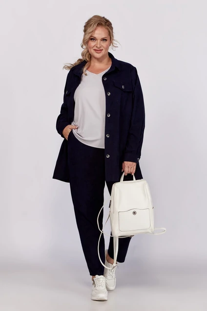Костюм женский из штрукса - это отличная базовая модель, которая должна быть в гардеробе каждой девушки. Костюм состоит из свободной рубашки прямого кроя со спущенной линией плеча и брюк-бананов. Костюм из штрукса отлично подходит для дома, прогулок, отдыха или путешествий. Рубашку можно носить навыпуск, дополнив топом или футболкой. Брюки женские подходят для любого типа фигуры, скрывают ее недостатки и подчеркивают достоинства. На брюках обработаны карманы-хулиганы. Брюки имеют удобную упругую резинку и гульфик на молнии. Рубашка имеет классический крой: воротник на стойке, кокетки на полочке и спинке, клапаны и накладные карманы, рукав с манжетой. Костюм с рубашкой подойдет девушкам и женщинам любого типа фигуры. Вы будете выглядеть непревзойденно и вызывать восхищение окружающих!