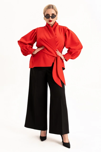 Элегантный женский костюм из ткани «марчано» стильный и универсальный наряд для различных мероприятий. Модель "двойка" сочетает в себе современные тенденции 2025-26 года с классическими акцентами. Подходит как для офиса, так и для особых случаев ( новый год, корпоративы, свадьбы или дни рождения) обеспечивая комфорт и уверенность в себе. Брюки с широкими штанинами палаццо выгодно подчеркивают женственные формы, а свободный крой обеспечивает удобство в любой ситуации. Этот костюм больших размеров идеально подойдет для прохладного времени года благодаря легкому материалу и возможности сохранить тепло. Текстура ткани добавляет изысканности и роскоши, делая образ особенно привлекательным на особых событиях. Благодаря универсальному дизайну, костюм можно успешно сочетать с различными элементами гардероба, создавая разнообразные стили от официального до повседневного. На брюках обработаны карманы в боковых швах, по талии пояс с застежкой на молнию и частично на резинке. Жакет с отрезной баской и воротником стойкой переходящей в борта. Застежка на потайную петлю и пуговицу и на завязки. Рукав длинный, втачной на манжете. По окату рукава обработаны складки. Доступен в различных размерах, в том числе и для женщин пышных форм, этот костюм позволит каждой леди подобрать идеальный вариант. Красный цвет костюма подчеркнут вашу индивидуальность и хороший вкус. Независимо от того, выберите ли вы его для офиса или вечера, этот костюм станет верным спутником в создании вашего стильного образа. Длина рукава (см): 62 Длина брюк (см): 106 Длина блузы (см): 67