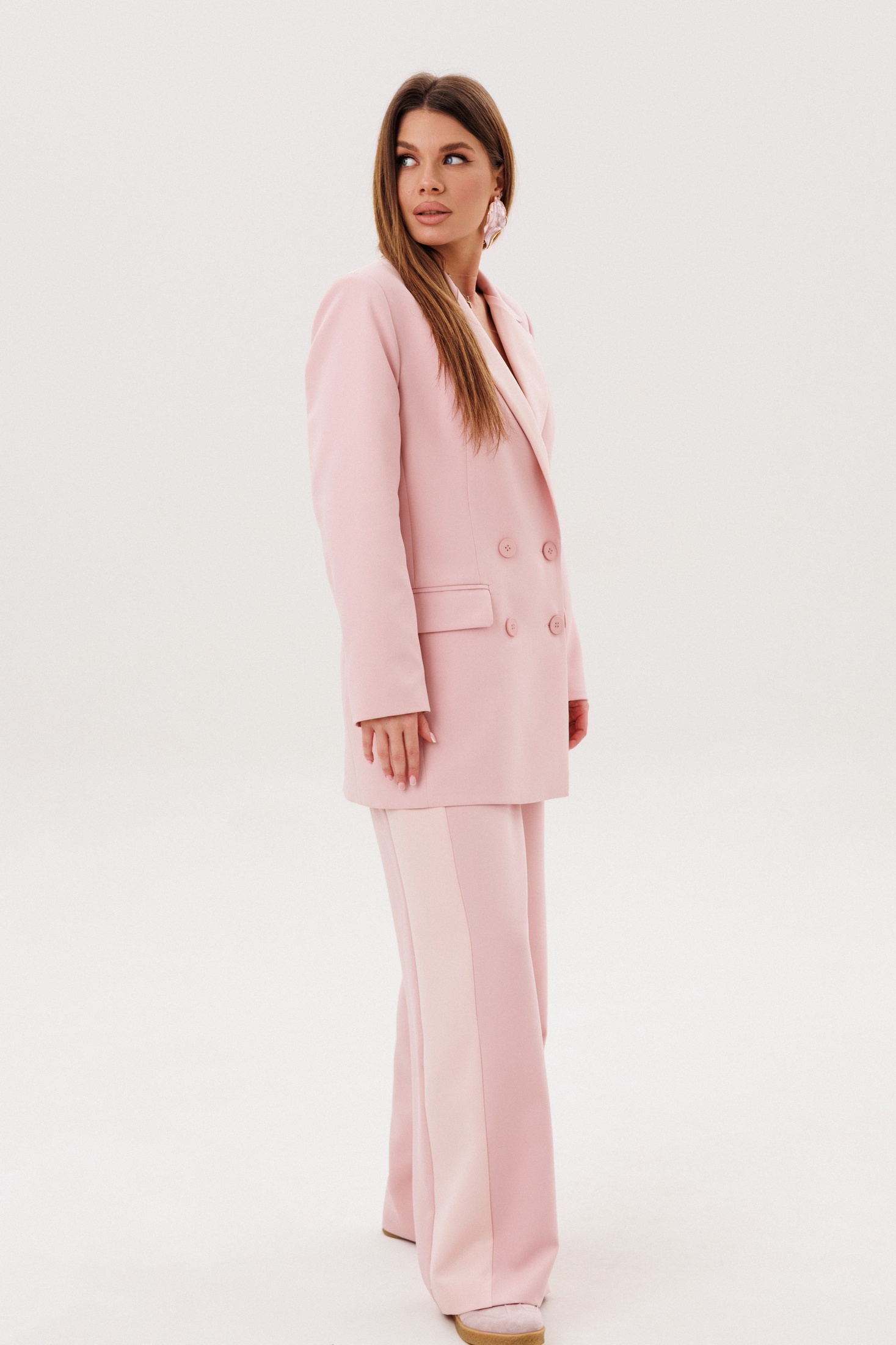 Костюм брючный 2153 пудра Ambera style — стильный выбор для ценителей комфорта и моды. Коллекция бренда Ambera style предлагает этот элегантный костюм в стиле спорт-шик, который идеально сочетает официальность и удобство. Жакет прямого силуэта с двухбортной застежкой и прорезными карманами добавляет образу солидности, а лампасы на брюках подчеркивают современные тренды. Изготовлен из вискозы с полиэстером и спандексом, этот костюм обеспечивает комфорт и свободу движений в любое время года. Пудровый цвет придаёт образу легкость и свежесть, что делает его идеальным выбором для офиса и стильных прогулок. Подкладка жакета обеспечивает дополнительное удобство, а высокая посадка брюк акцентирует линию талии.