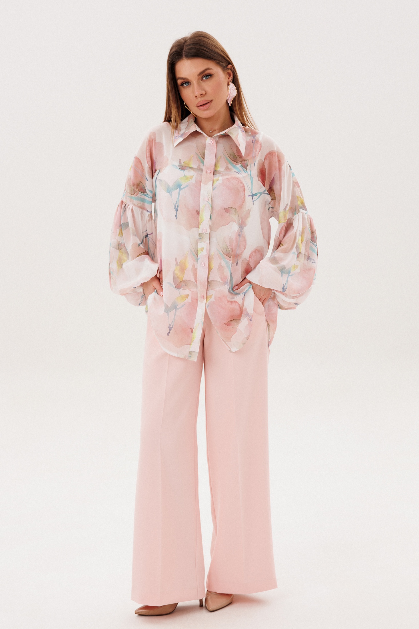 Костюм брючный 2158 пудра Ambera style — это стильный выбор для вашего гардероба. Коллекция бренда Ambera style предлагает двухпредметный комплект, состоящий из блузки и брюк. Блузка выполнена из 100% полиэстера рубашечного типа, со свободным силуэтом и спущенной линией плеча. Объемные рукава-буфы с резинкой по низу добавляют воздушности. Брюки из полиэстера, вискозы и спандекса имеют прямой крой с высокой посадкой и притачным поясом, обеспечивая удобное прилегание. Практичная застежка на тесьму-молнию облегчает носку, а боковые карманы усиливают функциональность. Нежный пудровый цвет добавляет женственности образу, а стиль идеально подойдет для весеннего или летнего сезона, привнося легкость и комфорт в повседневный лук.
