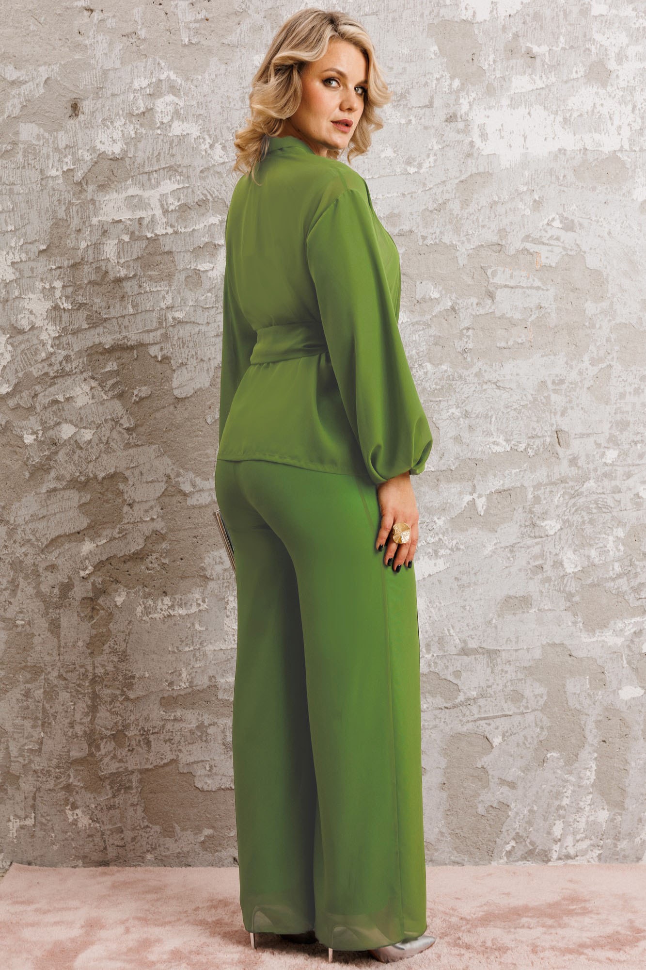 Элегантный вечерний костюм-двойка из шифона, состоящий из блузки свободного кроя и широких брюк. Красивый и эффектный брючный костюм - это идеальный образ для особых случаев, вечерних выходов, праздничных и торжественных мероприятий, будь то корпоратив, свадьба, юбилей, выпускной, день рождения, Новый год Блузка прямого силуэта из шифона со пущенной линией плеча. Рукав двойной, расширенный к низу со складками. По спинке и полочке идет планка. В комплекте с блузкой идет съемный пояс. На концах пояса металлизированная бахрома. Брюки прямые на трикотажной подкладке масло, с запахом по переду, пояс на резинке.Благодаря фасону и крою, костюм визуально вытянет силуэт, сделает фигуру стройнее, подчеркнет ее достоинства, скроет недостатки. Элегантный брючный костюм от Anastasia- комфорт и уверенность в себе на любом мероприятии Длина блузки: (48-56)-61см. Длина рукава-52см. Длина брюк:(48-54)-105см., (56)-108см.