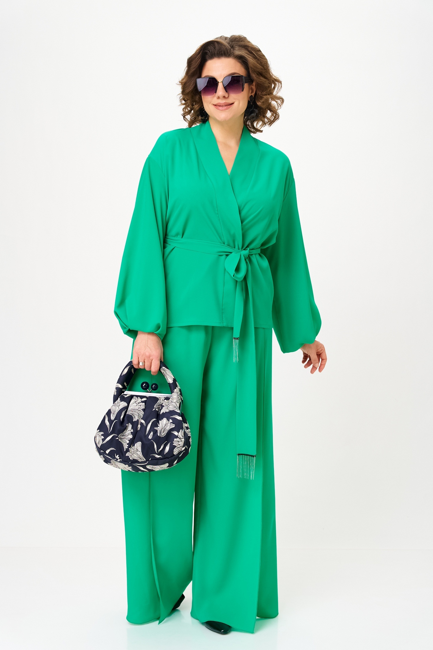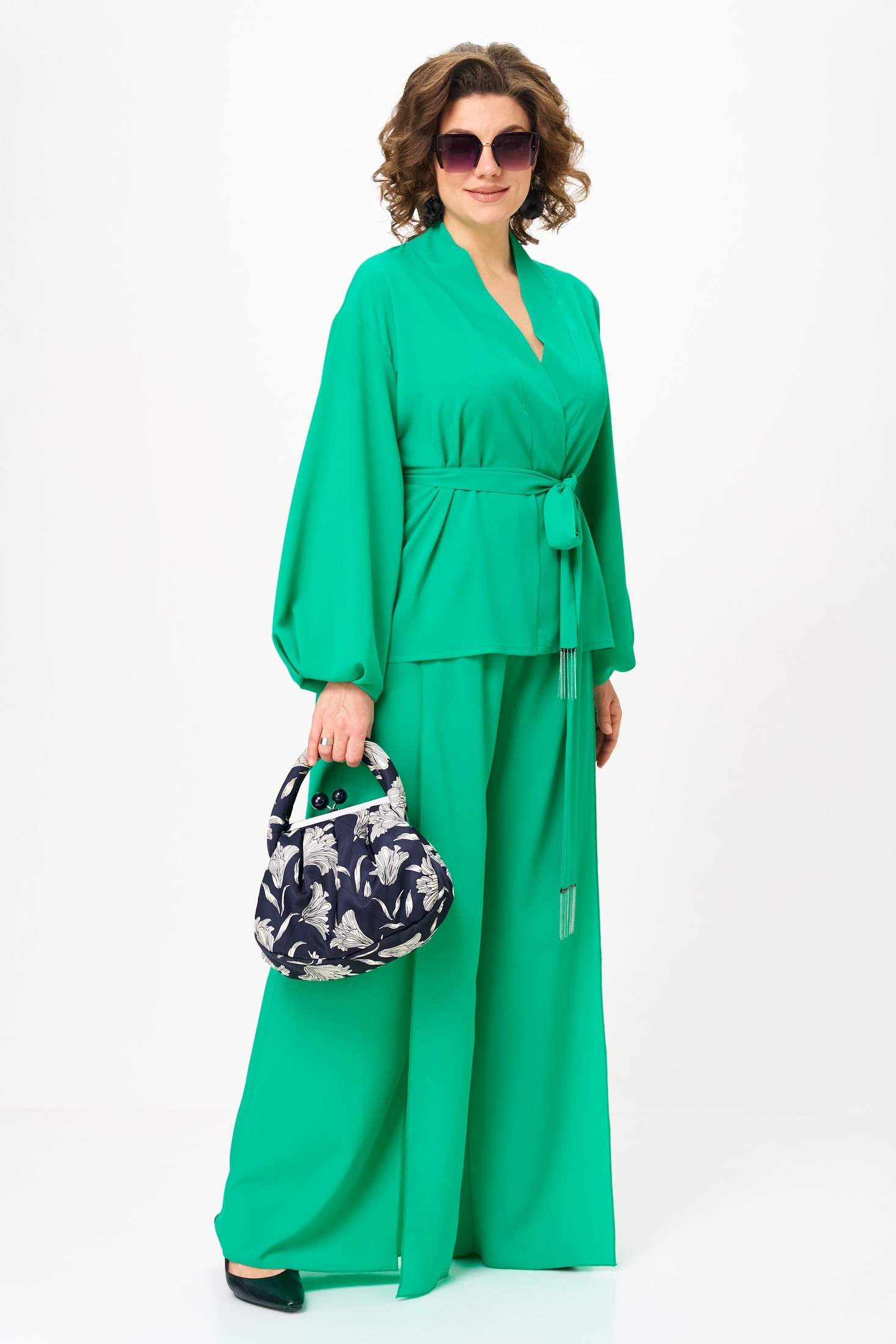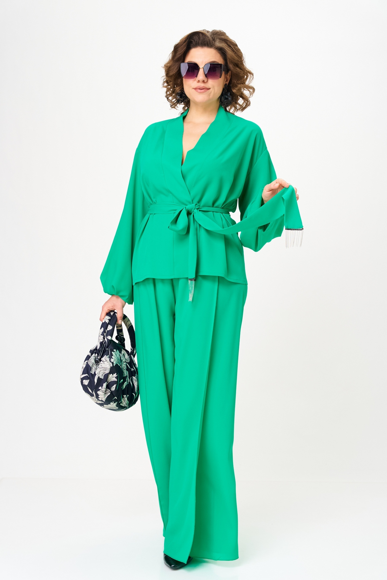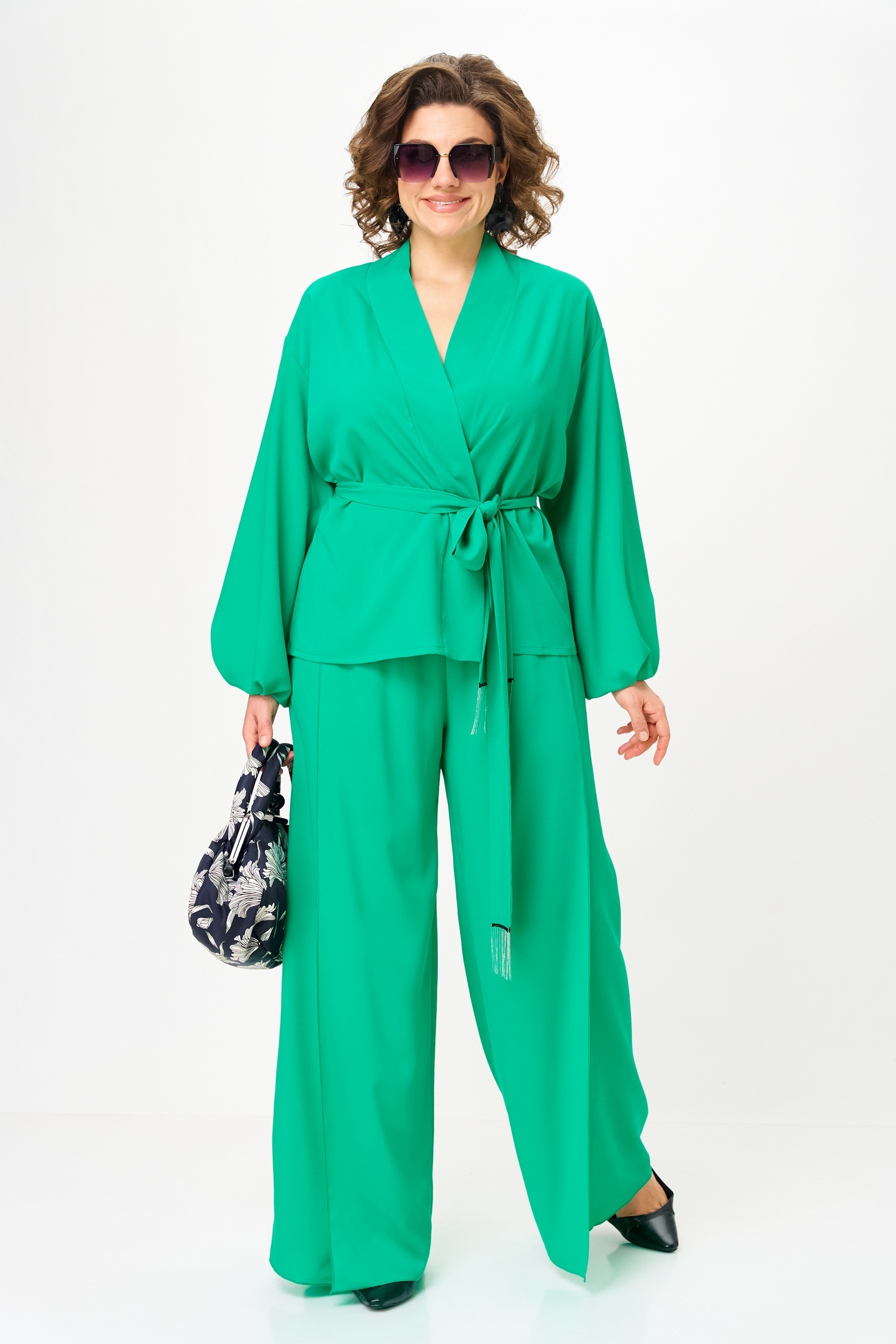 Костюм брючный 1063-1 нефрит Anastasia представляет собой изысканную двойку, включающую свободную блузку и широкие брюки. Коллекция бренда Anastasia предлагает этот яркий и эффектный костюм для особых случаев, будь то вечерние выходы или праздничные мероприятия. Изготовленный из 100% полиэстера, костюм обладает легкостью и комфортом. Блузка свободного силуэта со спущенной линией плеча и двойными рукавами, расширенными к низу, дополнена съёмным поясом с металлизированной бахромой. Прямые брюки с запахом и резинкой на поясе визуально удлиняют силуэт. Это идеальный выбор для весны и лета, созданный подчеркнуть достоинства фигуры. Длина блузки составляет 61 см, длина рукава - 52 см, а длина брюк достигает 105-108 см.