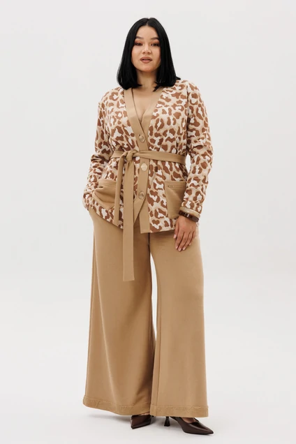 Шикарный трикотажный женский комплект от бренда Anastasia, идеальный для любого случая. Этот комплект сочетает в себе элегантность и комфорт, что делает его подходящим как для деловых встреч или прогулок. Комплект состоит из жакета и брюк. Жакет прямого силуэта. Застежка- планка с пуговицами. По полочке идут накладные карманы. Рукав втачной, одношовный. Подчеркнуть талию можно съемным поясом. В качестве декора- брендированная нашивка на кармане, перекликающаяся с золотыми пуговицами. Стильный комплект отлично подойдет для долгих прогулок или для работы, для офиса. Брюки, расширенные к низу, пояс на резинке, по бокам карманы. Отворот по низу на изнанку. Отдельный части костюма легко будут сочетаться с вещами из Вашего гардероба. Модель можно отнести к стилю кэжуал. Костюм можно носить с туфлями, кроссовками или ботинками. Обязательно добавьте наш бренд в избранное и следите за новинками, распродажами, скидками и акциями! Хороших покупок от «Анастасия». Длина (по спинке):(50-54)- 68см, (56-60)-71 см. Длина рукава: (50-60)- 60см. Длина брюк: (50-54):- 101см, (56-60)- 104см.