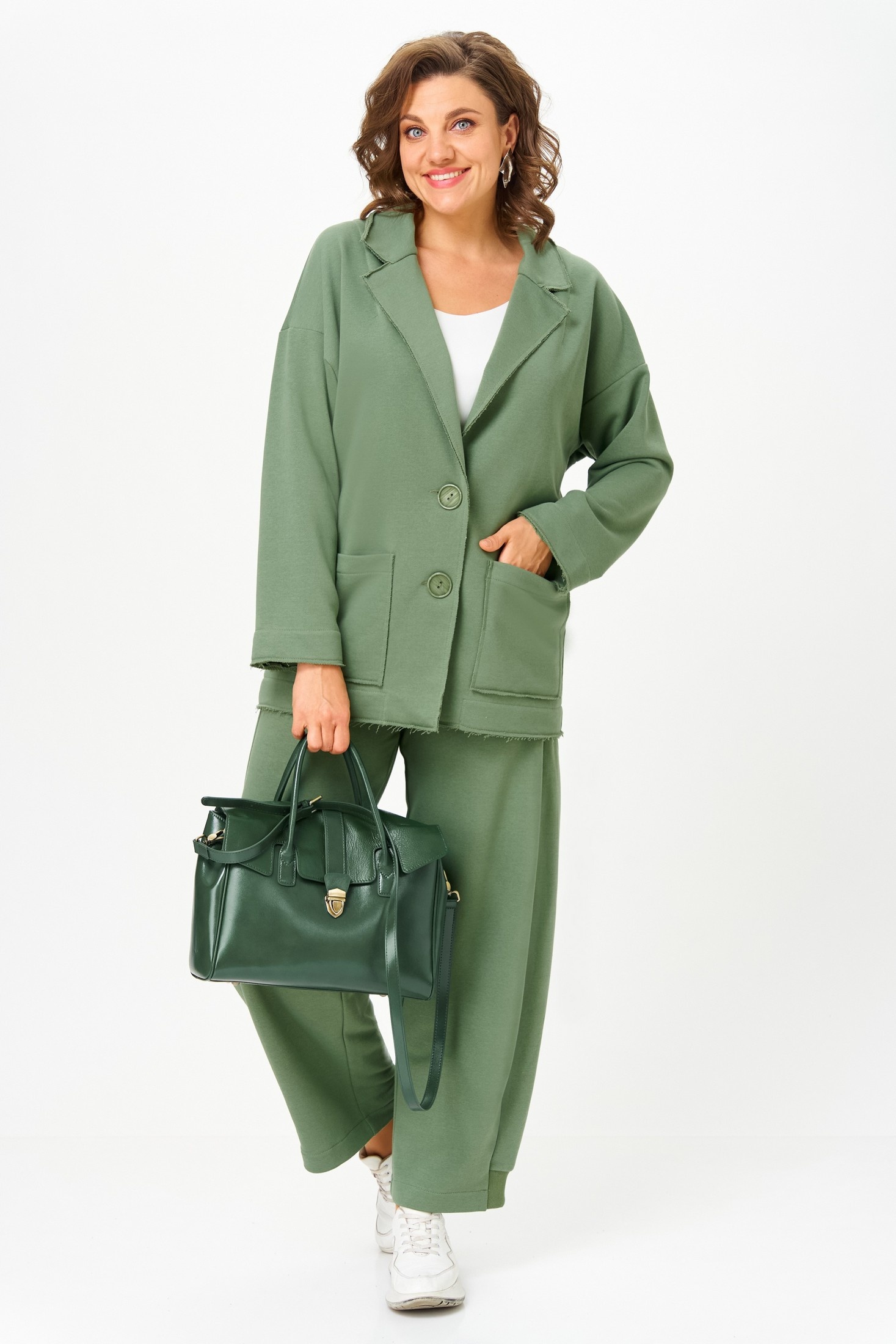 Костюм женский кэжуал (casual) из трикотажного материала трехнитка свободного кроя, который создает расслабленный силуэт -это отличный выбор для активных и стильных деушек и женщин, которые ценят моду и комфорт! Жакет со спущенным плечом. Воротник пиджачного типа, по полочке идут накладные карманы. Жакет без подкладки, мягкий и легкий. Края борта воротника, низов и карманов не обработаны. Застежка на петли и пуговицы. Выполнен в крое Oversize свободной формы и посадкой по фигуре. Если хотите силуэтную посадку, выбирайте на размер меньше. Если хотите посадку свободнее - заказывайте свой размер.