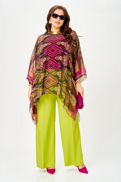 Костюм брючный 1339 лайм+мультиколор Anastasia