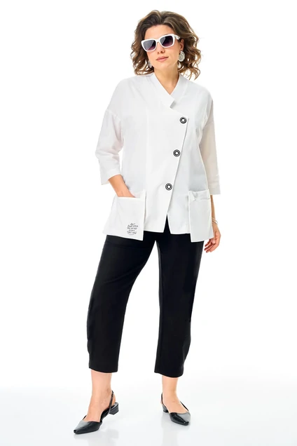 Костюм брючный 1345 бело-черный Anastasia фото 2