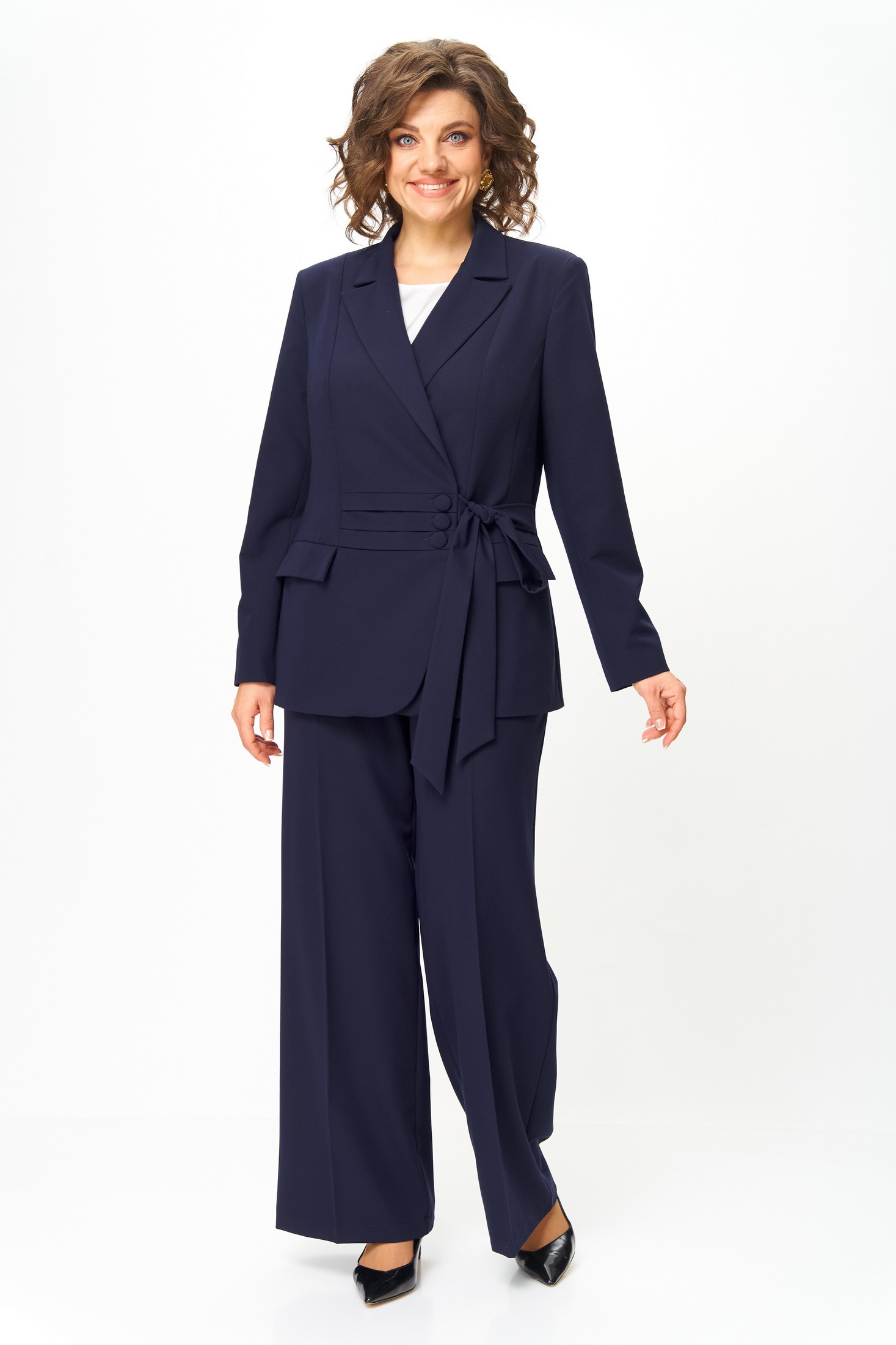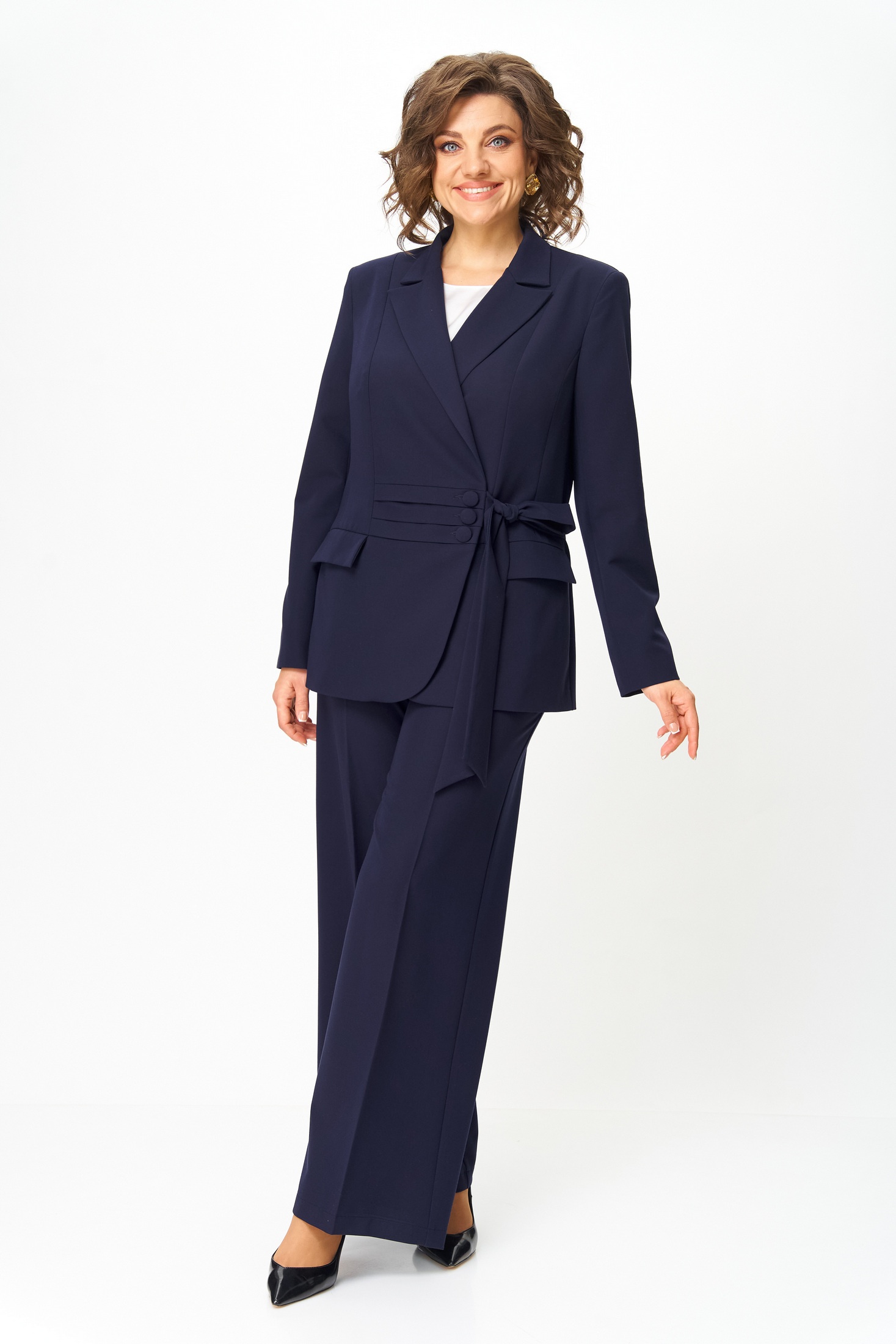 Костюм полуприлегающего силуэта, состоящий из жакета и брюк, выполнен из однотонной костюмной ткани. Ткань верха имеет механическое растяжение благодаря содержанию в ней эластана. Брючный костюм идеальный вариант как на торжественные мероприятия, так и отличный офисный вариант.