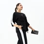 Этот стильный женский брючный костюм идеально подойдет для создания современного и элегантного образа. Костюм включает в себя блузку прямого силуэта белого цвета с асимметричными спущенными плечами и контрастной черной окантовкой, добавляющей изысканность образу. Брюки выполнены в черном цвете, обладают свободным кроем, что обеспечивает комфорт при носке. Модель брюк дополнена притачным поясом со шлевками на передней части и элегантной завязкой, а также удобной резинкой на спинке. Функциональные детали включают боковые наклонные карманы и талевые вытачки на задних половинках для лучшей посадки. Этот костюм подходит как для деловых встреч, так и для повседневной носки, сочетая в себе комфорт и модный дизайн.