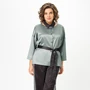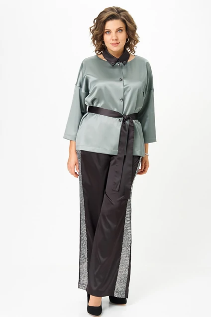 Стильная атласная блузка со съёмным воротником и дизайнерскими пуговицами, способна сделать ваш гардероб еще более модным и уникальным. Модель с рукавом ¾, свободным прямым кроем и съёмным поясом подойдет для любой фигуры, подчеркнёт её достоинства и скроет недостатки.