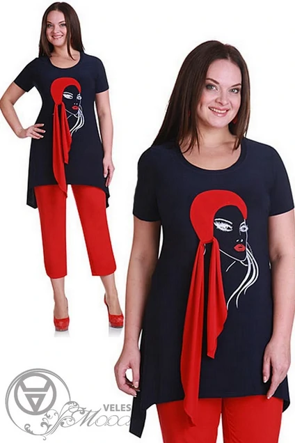 . Длина блузки по спинке 76 см, по бокам 92 см. Длина капри 86 см.Туника-масло(с эффектом холода,в жару не жарко)