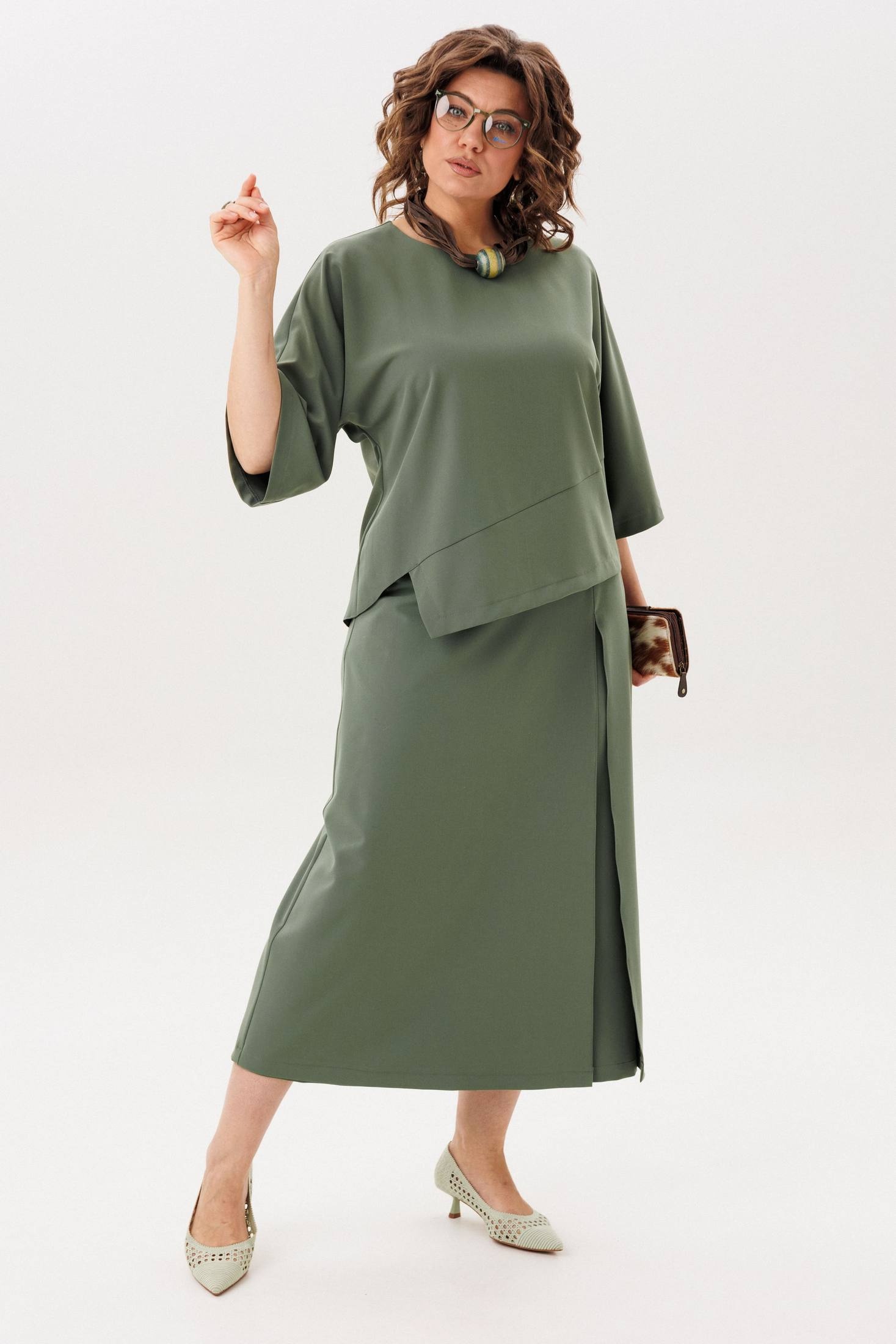 Костюм брючный 1793-2 зеленый холм Anelli