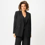 Жакет прямого силуэта, на подкладке. По переду - центральная двубортная застежка на петли и пуговицы, нагрудные вытачки и функциональные прорезные карманы с клапаном. Полочку жакета украшает съемная (на пуговицах) декоративная рюша с кружевом. Спинка со средним швом. Рукав втачной длинный двухшовный, с имитацией шлицы, декорированной пуговицами.