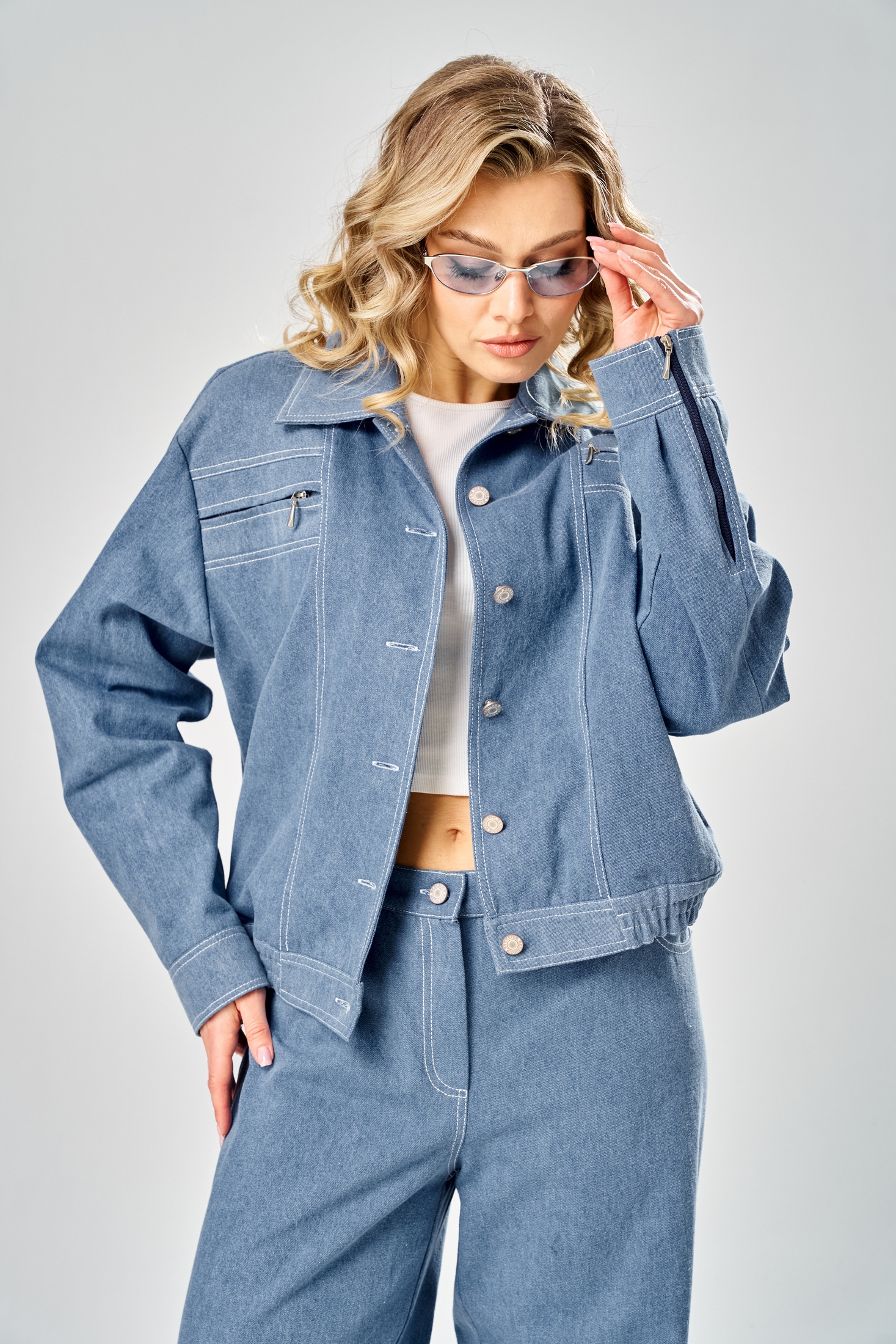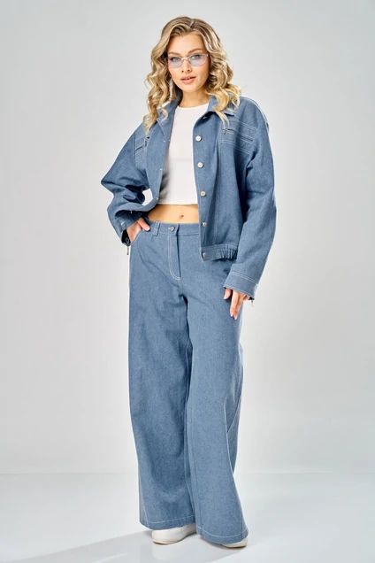 Костюм брючный 1001 голубой ARTELLA – стильное решение из коллекции бренда ARTELLA. Он выполнен из 100% хлопковой джинсовой ткани, придающей изделию комфорт и прочность. Комплект состоит из куртки свободного кроя и прямых брюк. Джинсовая куртка имеет спущенные плечи и застежку на пуговицах, дополняется декоративной тесьмой-молнией на карманах. Эластичная планка по низу куртки обеспечивает удобную посадку, а длинные рукава на спущенной пройме додают модели изысканности. Прямые брюки с застежкой на молнии и поясом с петлей на пуговице. Контрастные отделочные строчки подчеркивают актуальность дизайна. Костюм подходит для демисезонного использования, идеально для повседневного гардероба. Голубой цвет придаёт свежий и лёгкий вид.