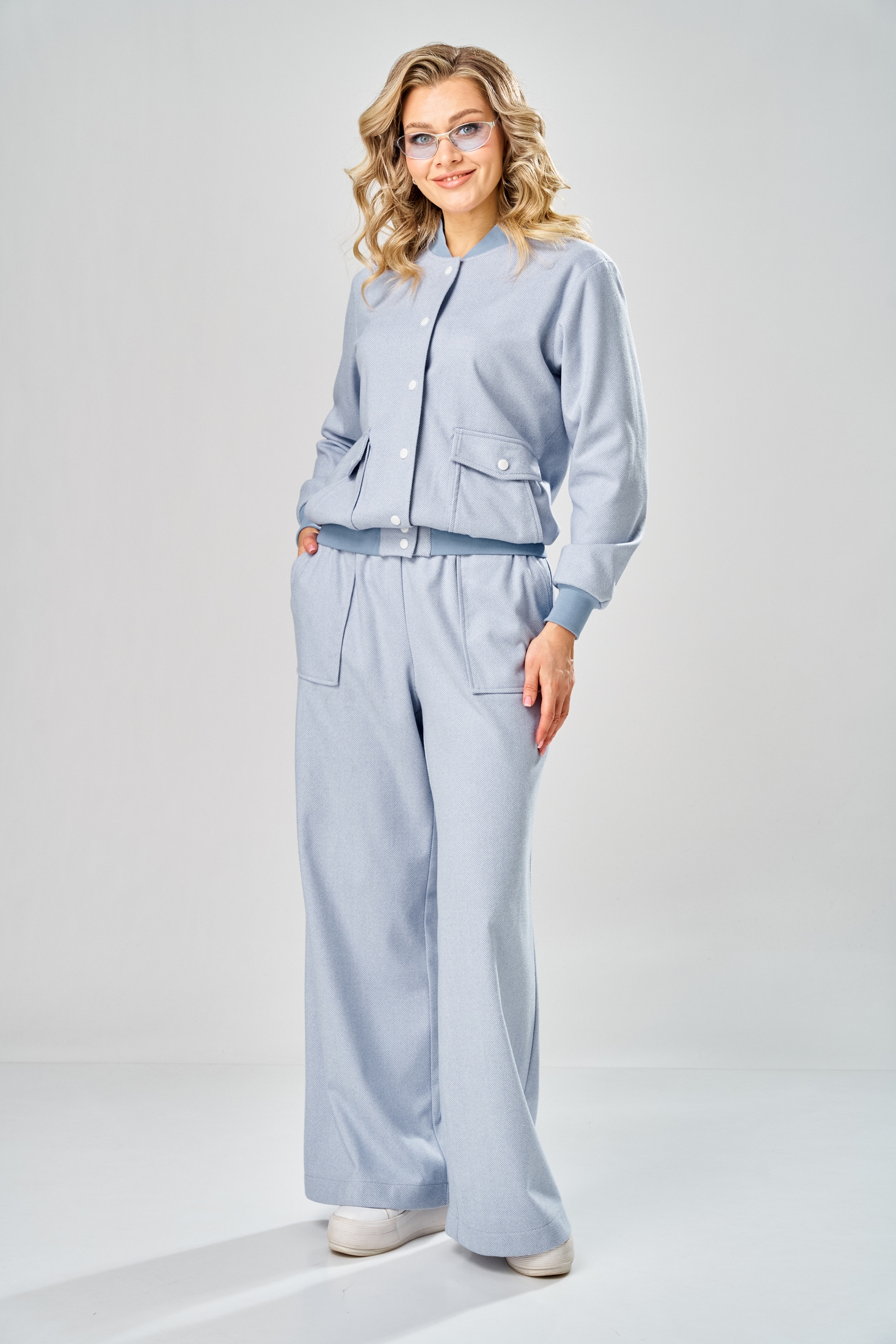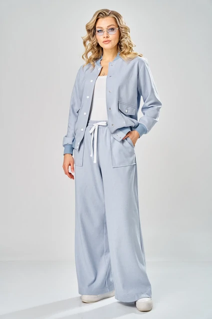 Костюм брючный 1033 голубой ARTELLA сочетает в себе стиль и комфорт. Коллекция бренда ARTELLA предлагает комплект из брюк и бомбера, выполненный из текстильной ткани с добавлением вискозы и спандекса для максимального комфорта и легкости ухода. Брюки прямого кроя с притачным поясом и эластичной тесьмой обеспечивают удобную посадку. Бомбер на подкладке с воротником-стойкой и застежкой на 7 кнопок создает современный образ для повседневной носки. Передние накладные карманы добавляют функциональности, а светло-голубой оттенок подчеркивает вашу индивидуальность. Длина жакета по спинке 66 см, длина рукава 60 см, что делает его идеальным для прогулок в условиях прохладной погоды пару длинных брюк длиной 111 см. Подходит для весны и осени.