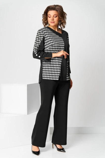Длина изделия джемпер - 72 (±1) см., брюки - 101 (±2) см. Рисунок абстракция, гусиная лапка Длина рукава 53 (±1) см.