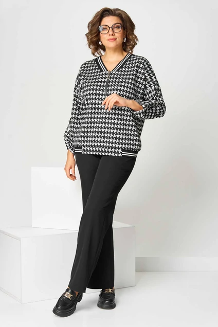 Длина изделия джемпер - 62 (±1) см., брюки - 100 (±2) см. Рисунок гусиная лапка. Длина рукава 64 (±1) см.