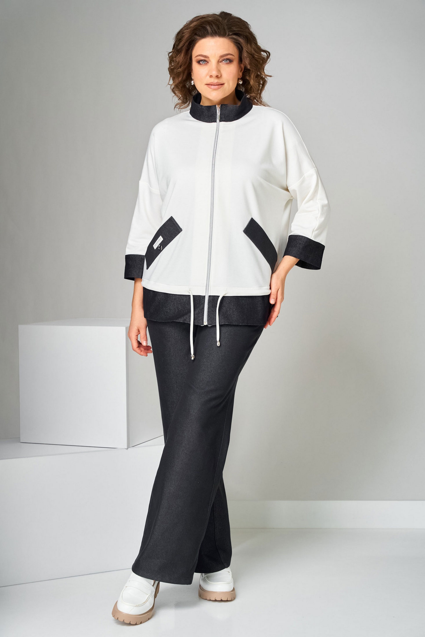 Костюм брючный 1517 Асолия представляет стиль и комфорт в одном изделии. Коллекция бренда предлагает свободный силуэт с бомбером и джинсами, выполненными из двунитки и джинсовой ткани. Бомбер с молнией и кулиской, дополненный карманами-листочками, создает модный и практичный образ. Джинсы на резинке обеспечивают удобную посадку. Идеален для весны и лета, этот нарядно-повседневный костюм в сером цвете прекрасно подходит для повседневной носки. Длина изделия бомбера — 66 см, длина джинсов — 103 см, а рукава составляют 59 см от шва. Материалы костюма включают в себя хлопок и вискозу, обеспечивающие мягкость и дышащие свойства, а также спандекс для небольшой эластичности.