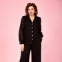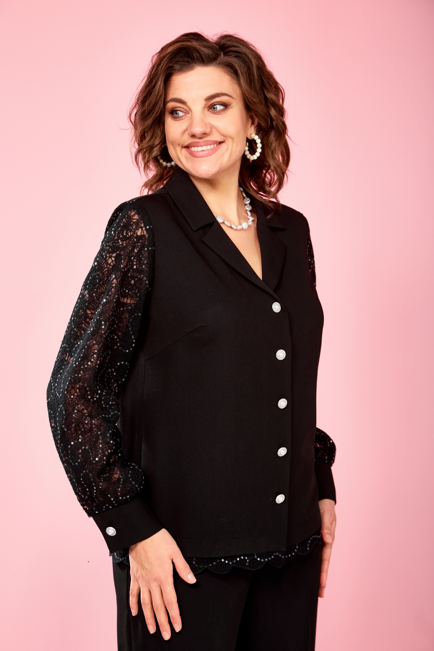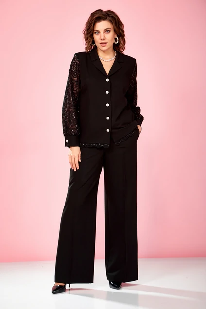 Этот женский комплект сочетает в себе комфорт и праздничную элегантность. Прямые классические брюки сидят строго и стильно, оснащены боковыми карманами, застёжкой «молния + пуговица» и мягкой резинкой в поясе для комфортной посадки. Блузка выполнена в прямом крое — V‑образный вырез визуально удлиняет шею, застёжка на петли‑пуговицы добавляет изящества, а сетчатые рукава с пайетками придают образу мерцание и лёгкую торжественность. Низ рукава оформлен манжетами для аккуратной посадки. Комплект отлично подойдёт для праздничных мероприятий, вечеринок и официальных приёмов. Длина брюк-110 см. Длина блузки-68 см.
