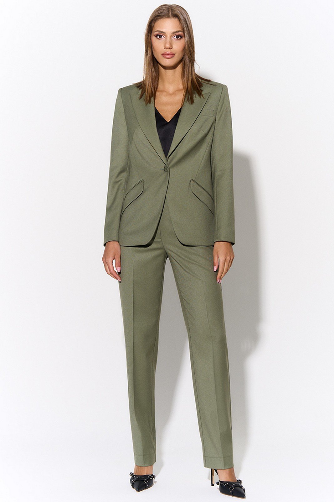 - полуприлегающего силуэта с центральной застёжкой на петлю и пуговицу;