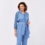 Костюм брючный 10029 AZZARA от коллекции бренда AZZARA — это идеальное сочетание стиля и комфорта. Комплект состоит из жакета, брюк и джемпера, выполненных из полиэстера и спандекса. Жакет свободного покроя, комбинированный из однотонной ткани и блестящего трикотажа, с отложным воротником и лацканами. Рукав 3/4 длины добавляет изысканности, а пояс подчеркивает талию. Брюки прямые и свободные, с эластичной тесьмой на поясе и боковыми карманами. Джемпер без рукавов, со спущенной проймой, придает образу легкость. Костюм подходит для повседневного офисного стиля и теплых весенне-осенних дней. Цвет комплекта — нежный голубой.