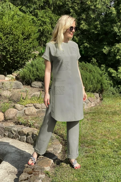 Комплект женский, состоит из брюк и туники.