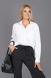 Комплект женский брючный, включающий в себя блузку и брюки, выполнен в элегантном сочетании разных текстур ткани. Блузка рубашечного покроя выполнена в белом цвете, представляет собой свободную модель с втачным рукавом и манжетами по низу рукава. Брюки прямого кроя представлены в черном цвете с тонкими белыми вертикальными полосами. Оснащены поясом с эластичной тесьмой и шнуром для регулировки посадки, а также практичными боковыми карманами по передним половинкам.