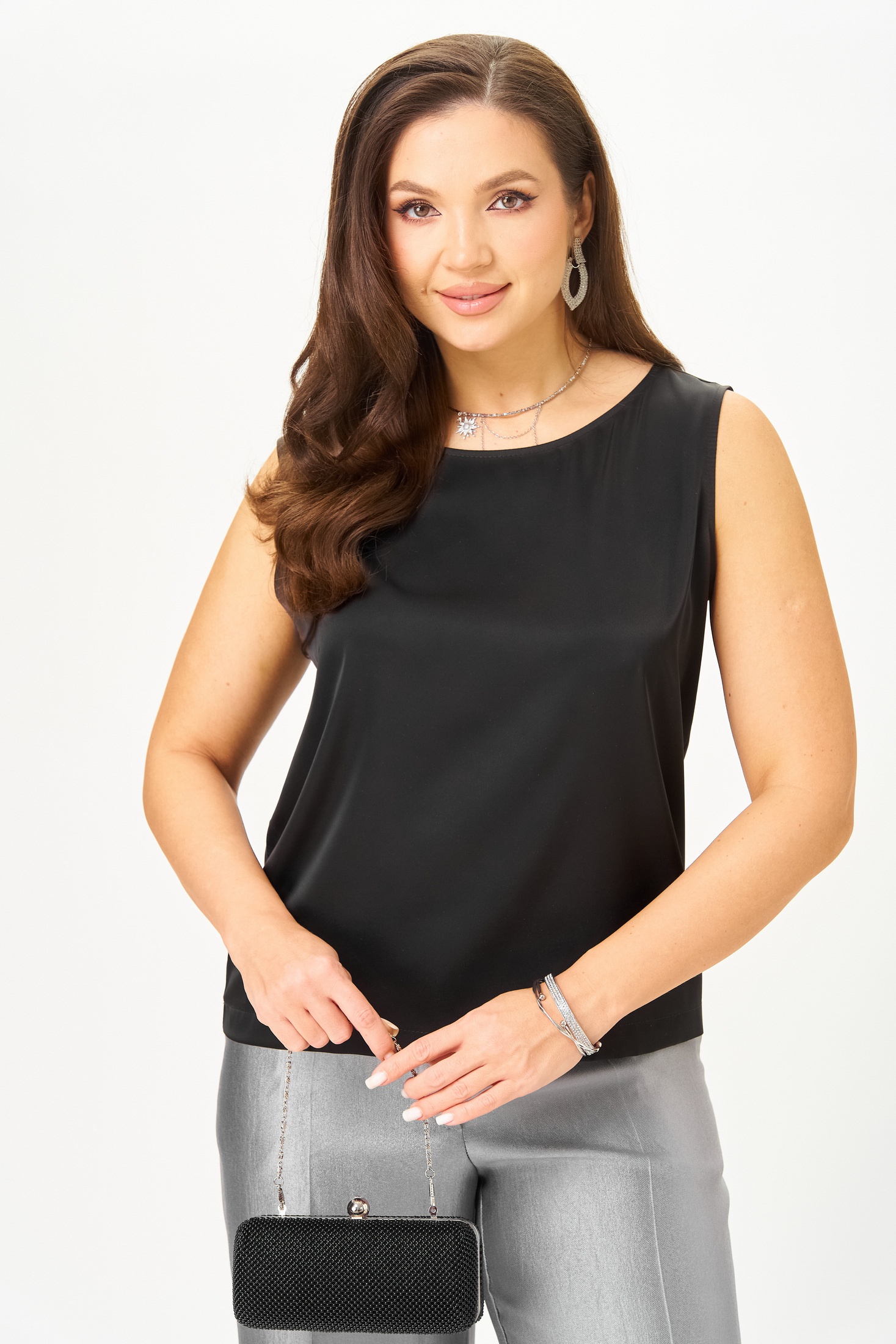 Блуза прямого силуэта. Овальный вырез горловины и проймы окантованы косой бейкой.