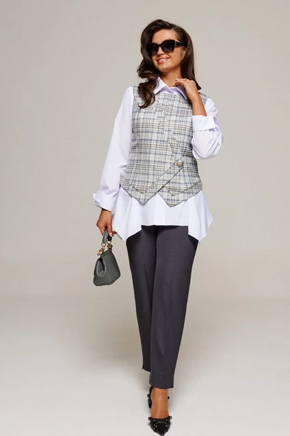 Костюм брючный 6190 клетка + графит Beautiful&Free