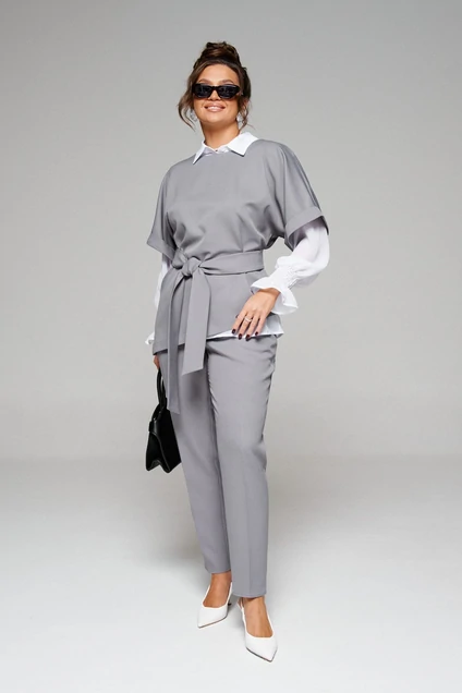 Деловой комплект 3-ка, состоящий из трех элементов: блузки, брюк и жилета.