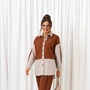 Блуза прямого, свободного силуэта без рукавов, выполнена из полотна типа «вуаль». Передняя часть блузы двухслойная цельнокроеная с вытачками от бокового шва. Спинка однослойная цельнокроеная. Вырез горловины круглый. Низ прямой.