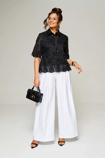 Комплект с широкими брюками «палаццо» идеально подойдет для создания лаконичных офисных луков, а также для повседневного использования. Такие модели смотрятся необыкновенно женственно и эффектно.