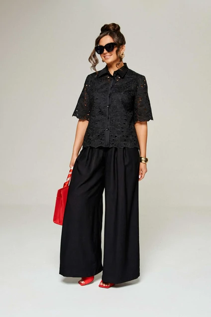 Комплект с широкими брюками «палаццо» идеально подойдет для создания лаконичных офисных луков, а также для повседневного использования. Такие модели смотрятся необыкновенно женственно и эффектно.