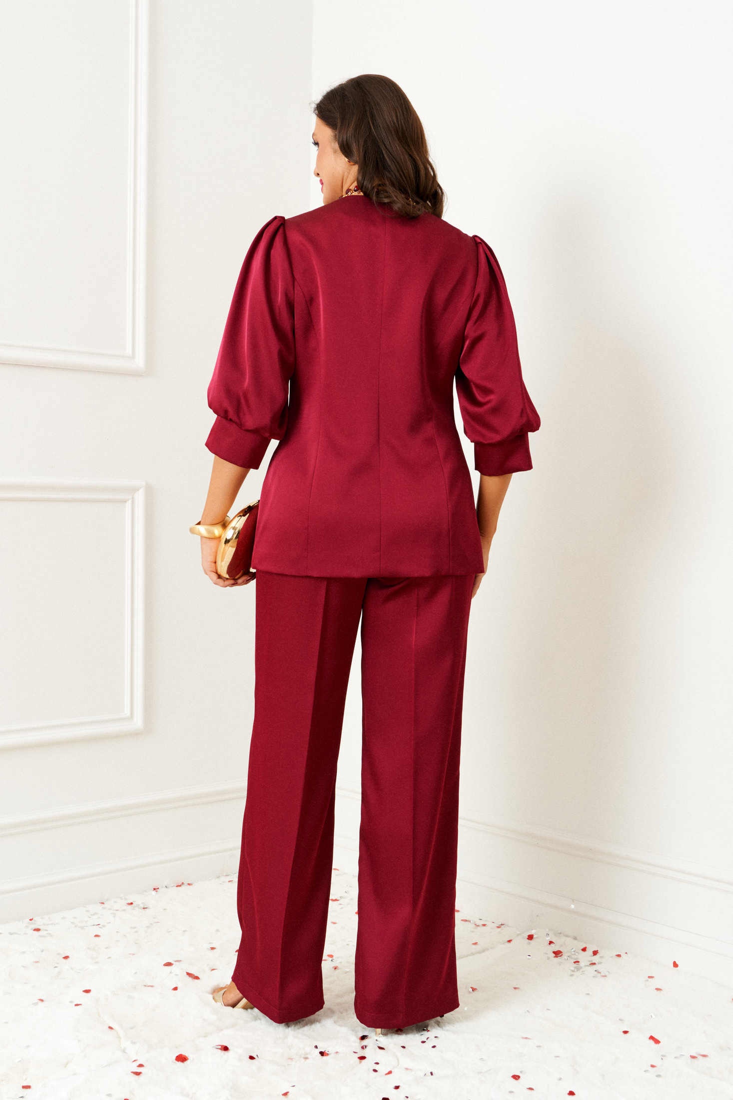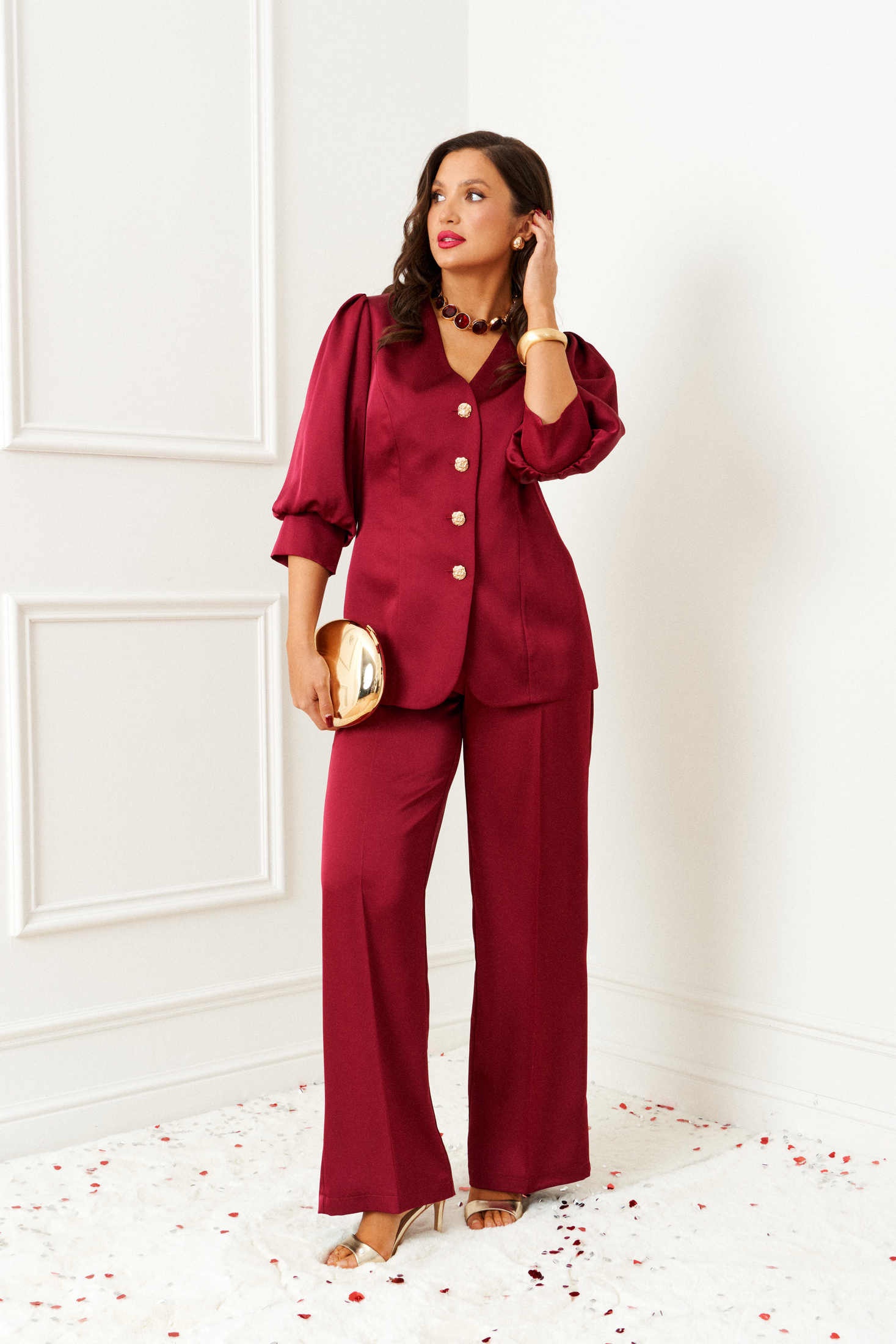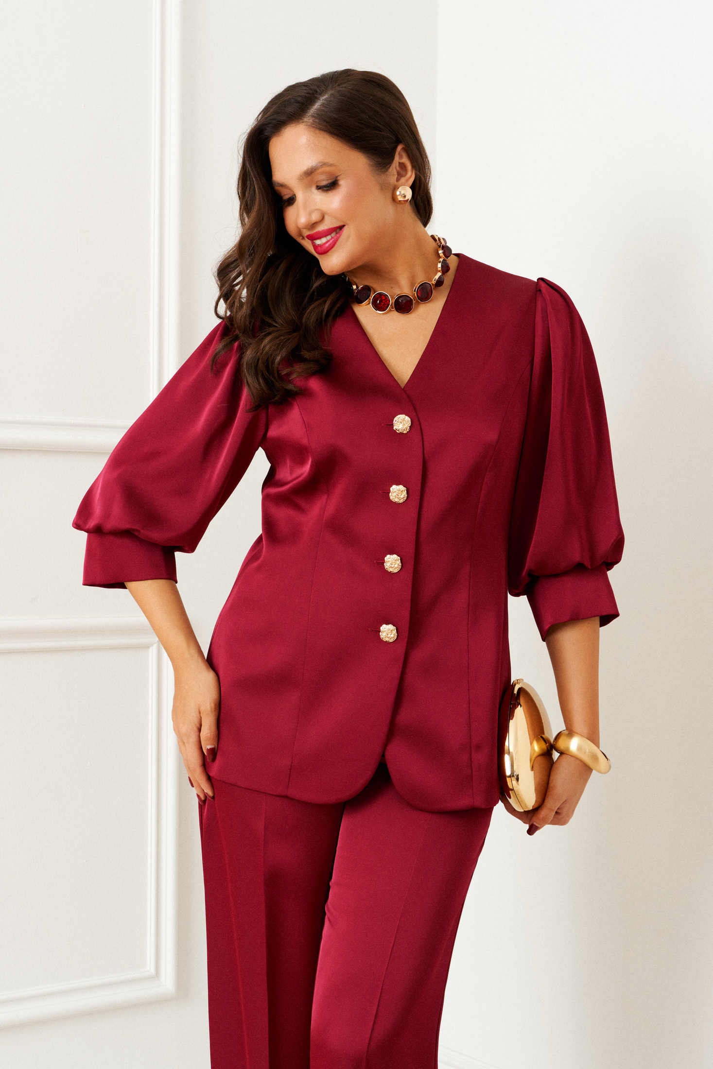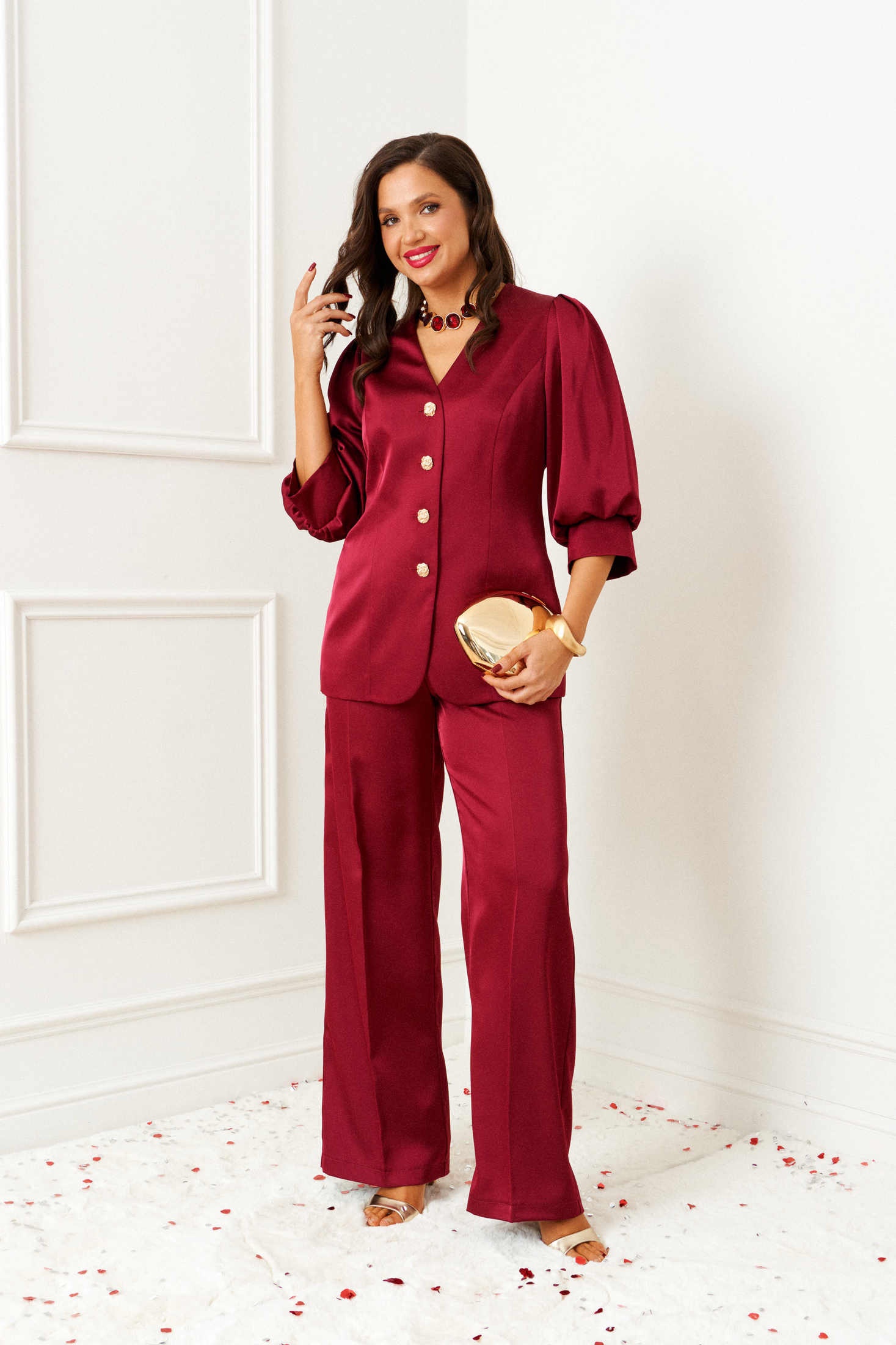 Костюм женский 2-ух предметный: жакет и брюки в деловом стиле. Выполнен из роскошного полотна «атлас» нежной и блестящей фактуры.