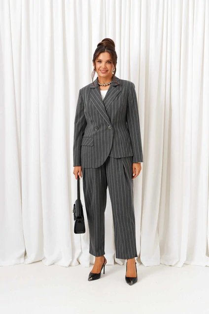 Костюм брючный 6418 полоска серая Beautiful&Free