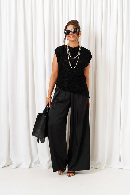 Костюм брючный 6432 черный Beautiful&Free идеально сочетает в себе стиль и комфорт. Коллекция бренда Beautiful&Free предлагает эффектный комплект из атласа и кружева, создающий выразительный образ для любых случаев. Блузон прилегающего силуэта с асимметричным кроем выполнен из кружевного полотна на трикотажной основе и дополнен мягкой подкладкой. Легкая горловина «качель» и потайная боковая молния обеспечивают удобство и элегантный вид. Широкие брюки с высокой посадкой и функциональными карманами добавляют практичности. Черный цвет и изысканный дизайн делают этот костюм идеальным выбором для вечерних мероприятий и офисных будней. Длина блузона — 66-67 см, длина брюк — 108 см.