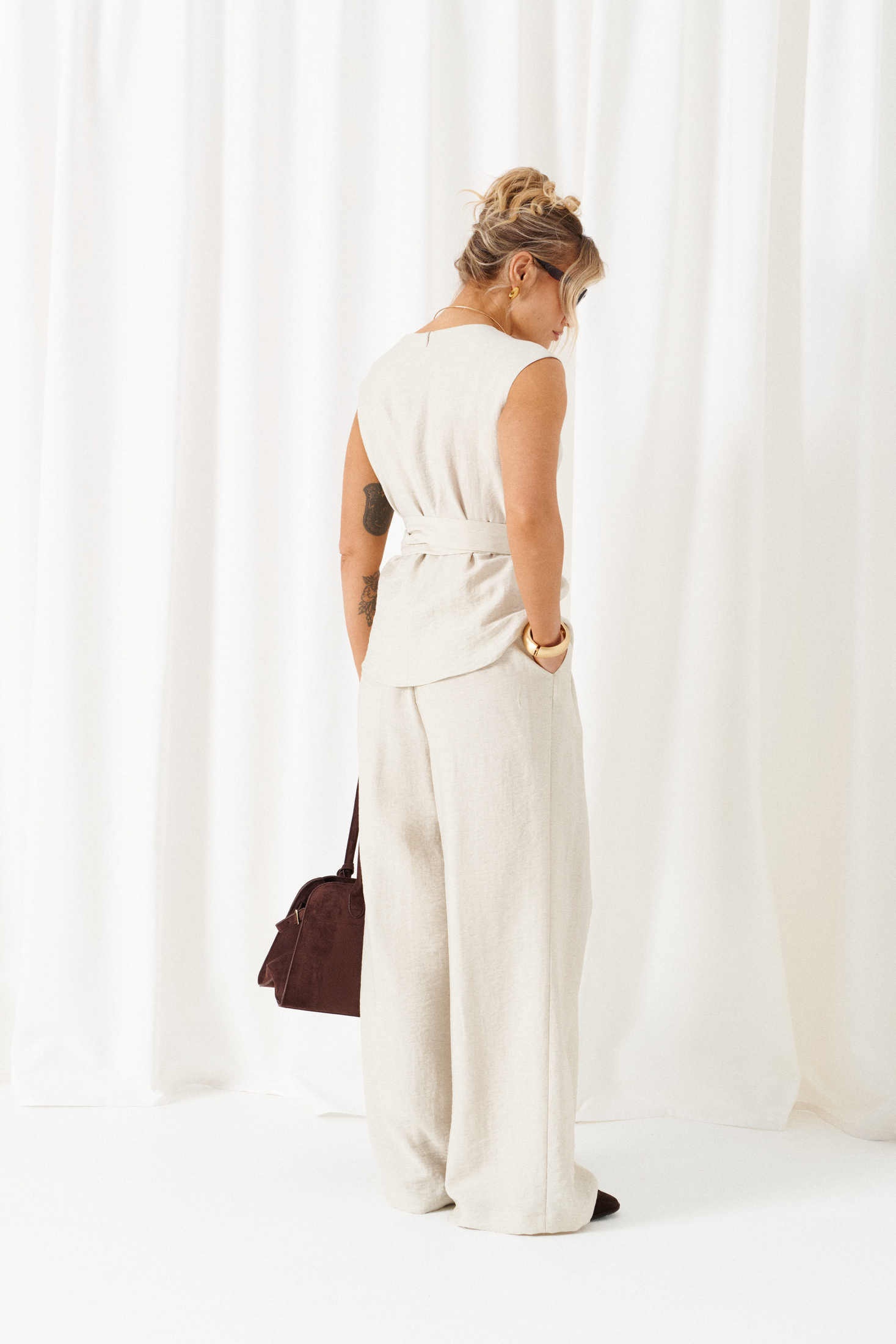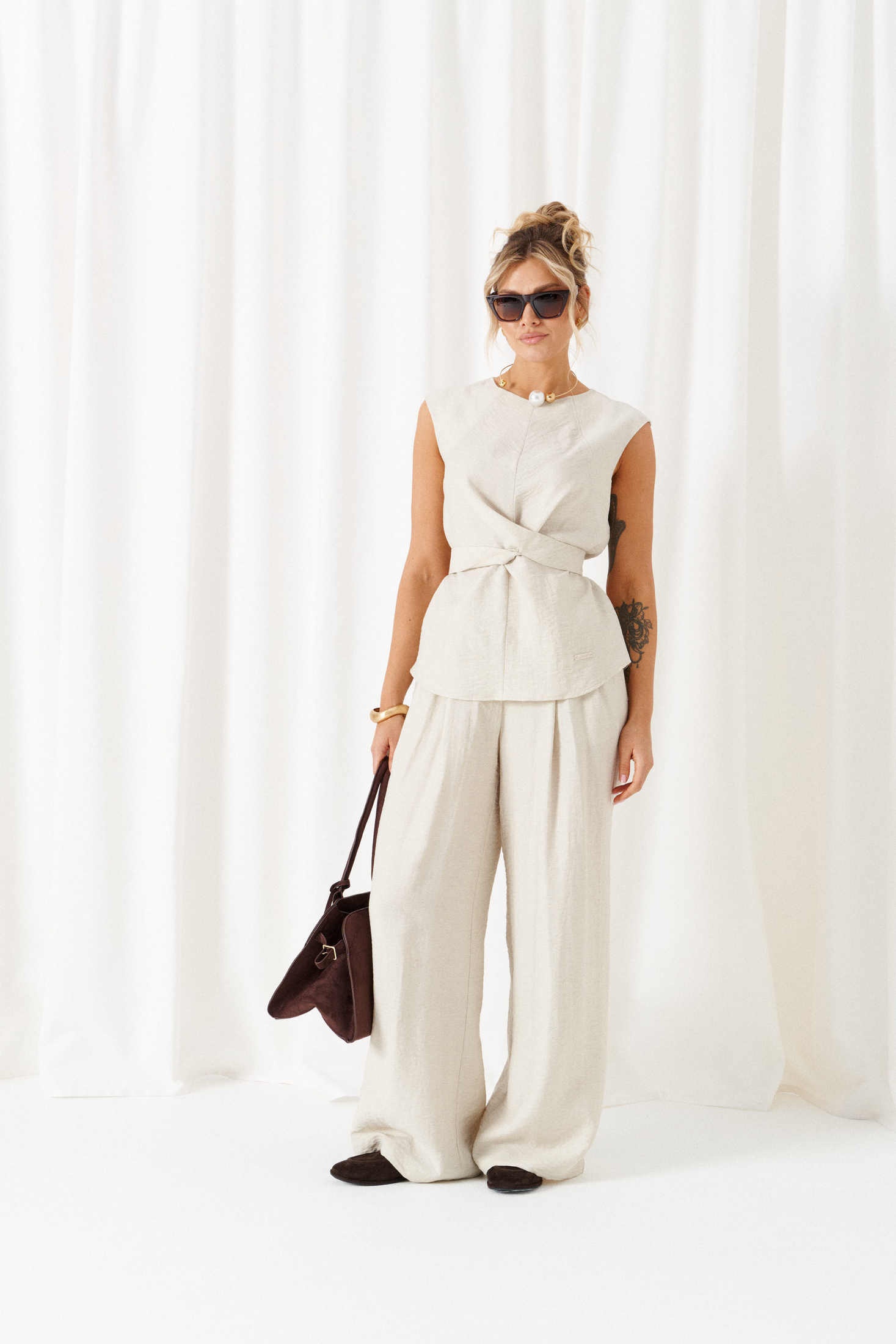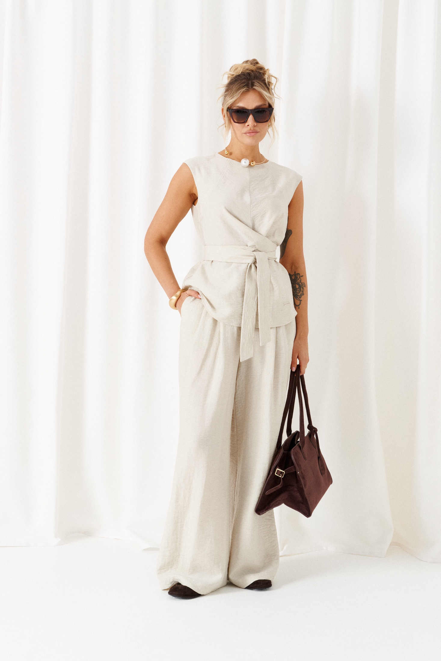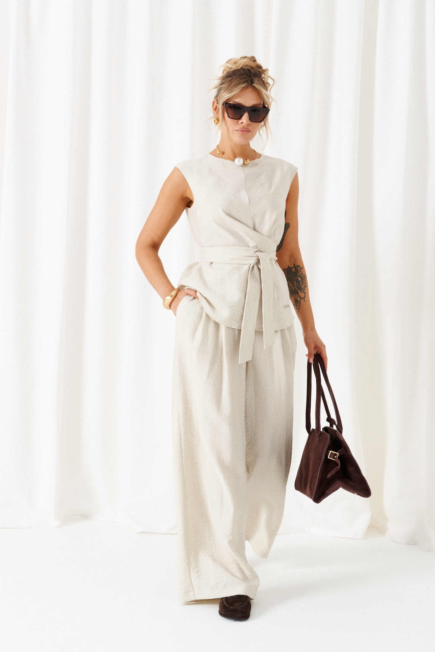Костюм брючный 6466 песочный Beautiful&Free предлагает уникальное сочетание стиля и комфорта. Коллекция бренда Beautiful&Free использует натуральные материалы: 80% лен и 20% вискоза, что делает костюм идеальным для теплых сезонов. Фьюжн стиль и песочный цвет добавляют элегантности, а свободный крой обеспечивает комфорт. Блузка без рукавов с оригинальными завязками подчеркивает талию, создавая эффектный образ. Брюки прямого силуэта с классической посадкой и боковыми карманами подойдут для повседневного ношения. Длина брюк составляет 110 см, а длина блузки по спинке — 65 см, что обеспечивает универсальную посадку. Носите костюм в офисе или на прогулке — он всегда будет к месту.