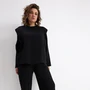 Лонгслив свободного кроя с цельной декоративной планкой по передней и задней части. Благодаря конструктивным особенностям модель делает акцент на линии плеча и создаёт дополнительную вертикаль, что невероятно стройнит и вытягивает силуэт! Горловина обработана обтачкой с открытым срезом. Низ рукава и низ изделия имеют открытые срезы. На плечах металлические декоративные зажимы золотистого цвета.