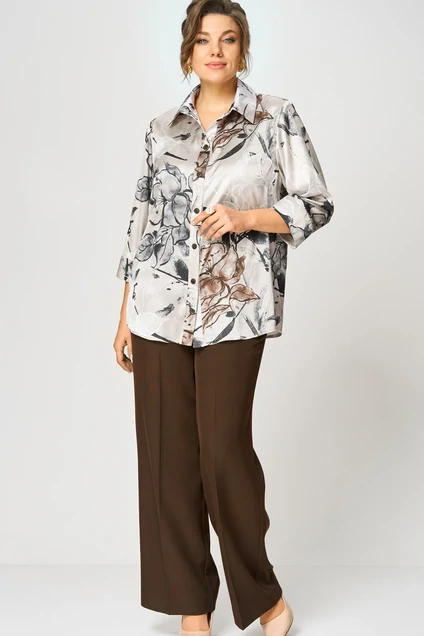 Костюм брючный 877+601 бежево-коричневый БелЭльСтиль