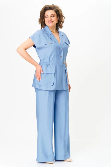 Длина блузона по спинке – 71 см Длина брюк по боковому срезу – 110 см Длина брюк по шаговому – 85 см