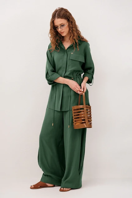 Костюм брючный 3336 изумруд BUTER — это стильное и практичное решение для любого случая. Коллекция бренда BUTER воплощает сочетание комфорта и элегантности. Изготовлен из мягкой и дышащей ткани, состоящей на 89% из вискозы и 11% полиэстера, костюм обеспечивает комфорт даже в течение длительного времени. Блузка прямого силуэта с длинными рукавами и рубашечным воротником, дополненная потайной застежкой на пуговицы и карманом с клапаном, придает образу аккуратность. Кулиса на спинке и полочке позволяет создавать разнообразные образы. Брюки заужены к низу и имеют застежку на крючок, скрытую пуговицу и гульфик, что делает их универсальными для любого повода. Декоративные складки в сочетании с насыщенным изумрудным цветом подчеркивают современный стиль комплекта. Этот костюм идеально подходит для осенне-весеннего сезона и станет отличным выбором для прогулок или офисных встреч.