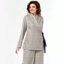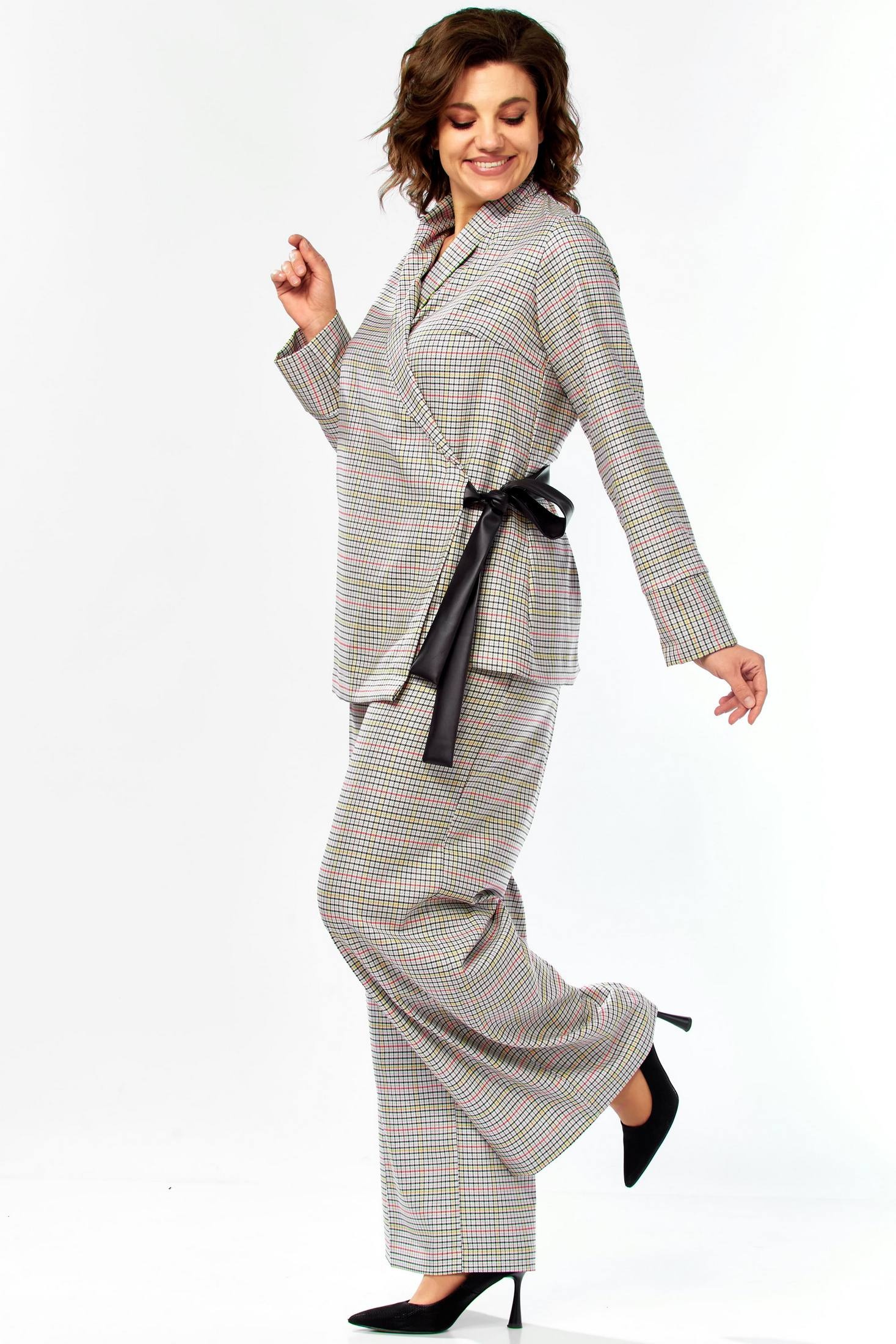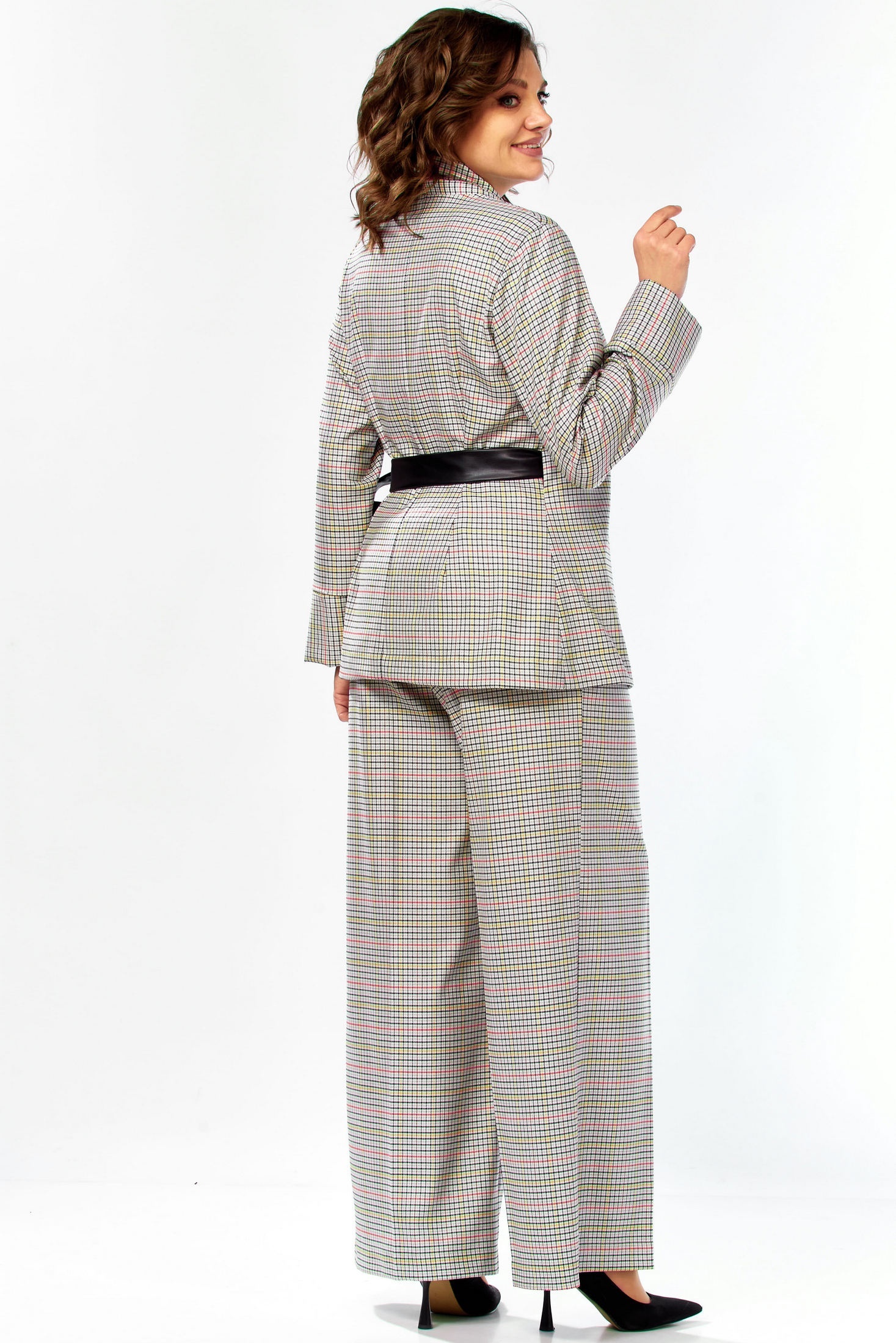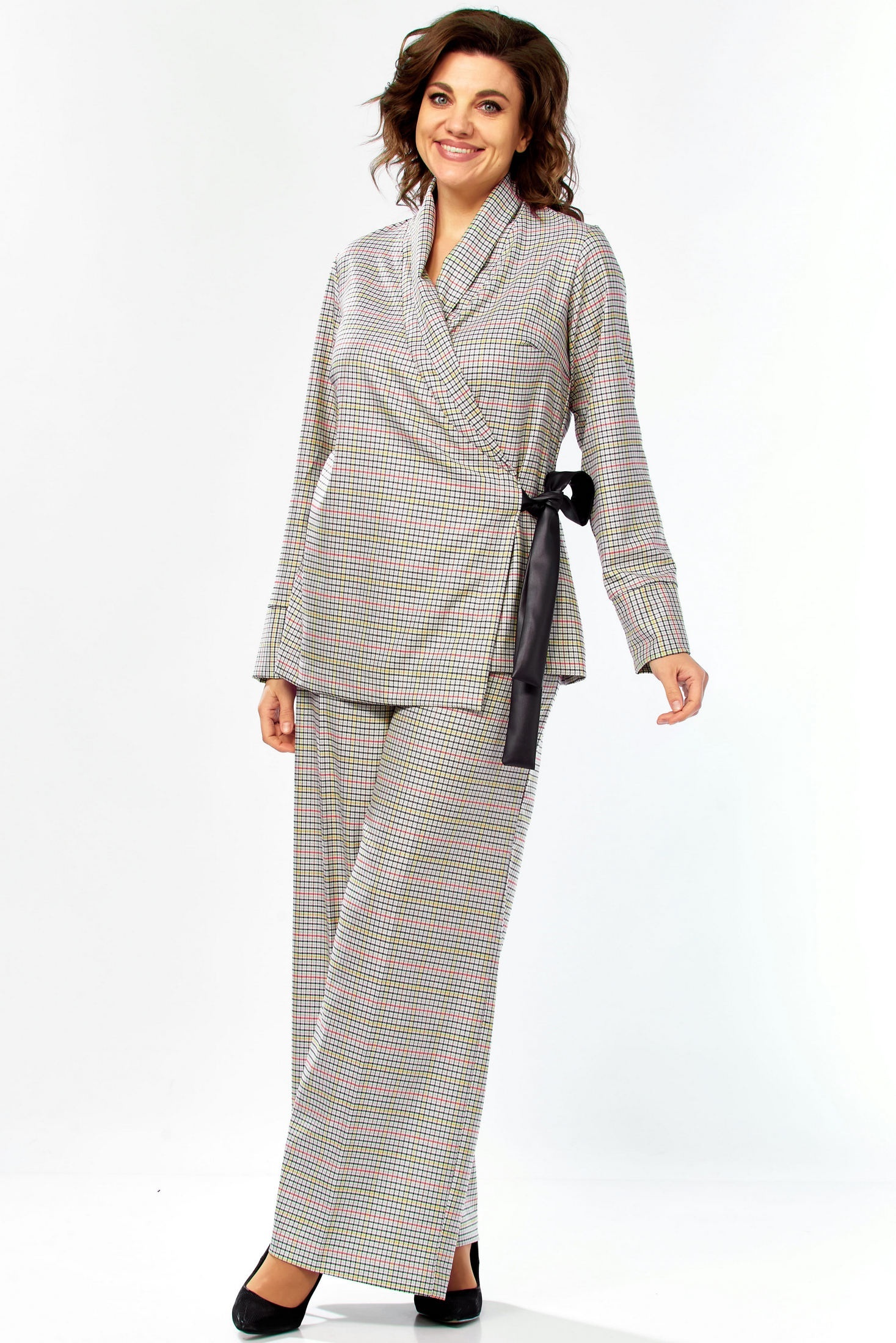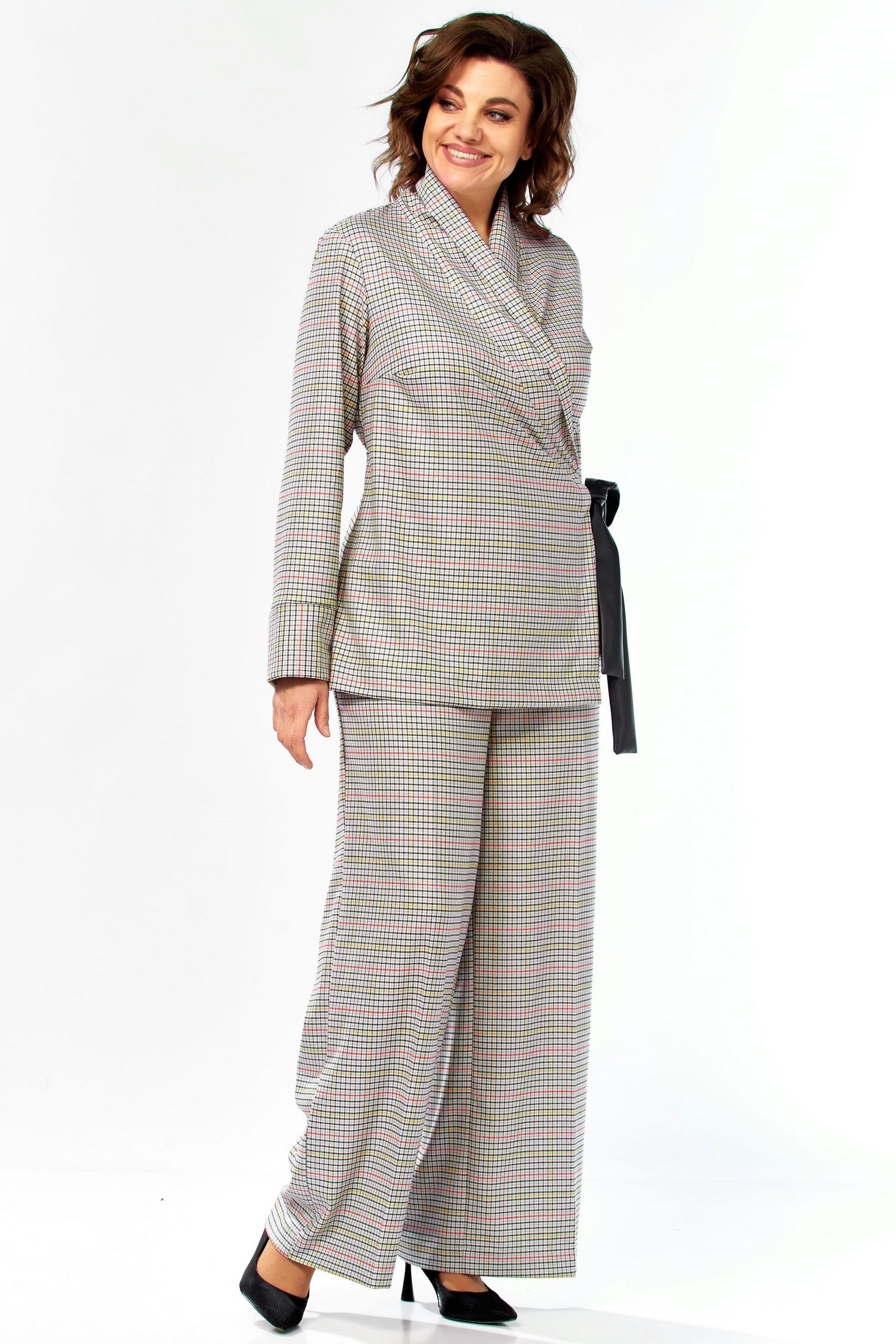 Костюм брючный 5081 клетка Celentano. Коллекция бренда Celentano предлагает стильный костюм, состоящий из жакета на запах и брюков-палаццо. Полуприлегающий силуэт жакета с шалевым воротником и лентой фиксирует фигуру, создавая женственный образ. Брюки-палаццо с высокой посадкой и карманами обеспечивают комфорт и уверенность. Материал из вискозы и полиэстера мягко облегает тело, позволяя коже дышать. Стиль костюма идеально подходит для офисных встреч и повседневных прогулок. Костюм сохраняет четкие линии благодаря клетке, добавляя строгости и современности. Длина жакета составляет 72 см, рукав 62 см, брюки — 106 см по боковому шву. Носите костюм в деловой обстановке, создавая элегантный образ в любую погоду.