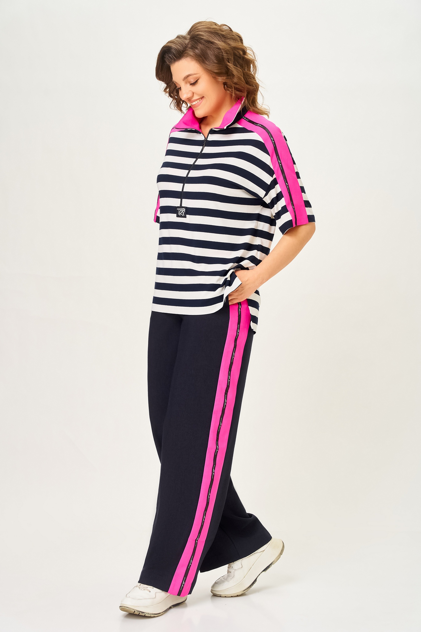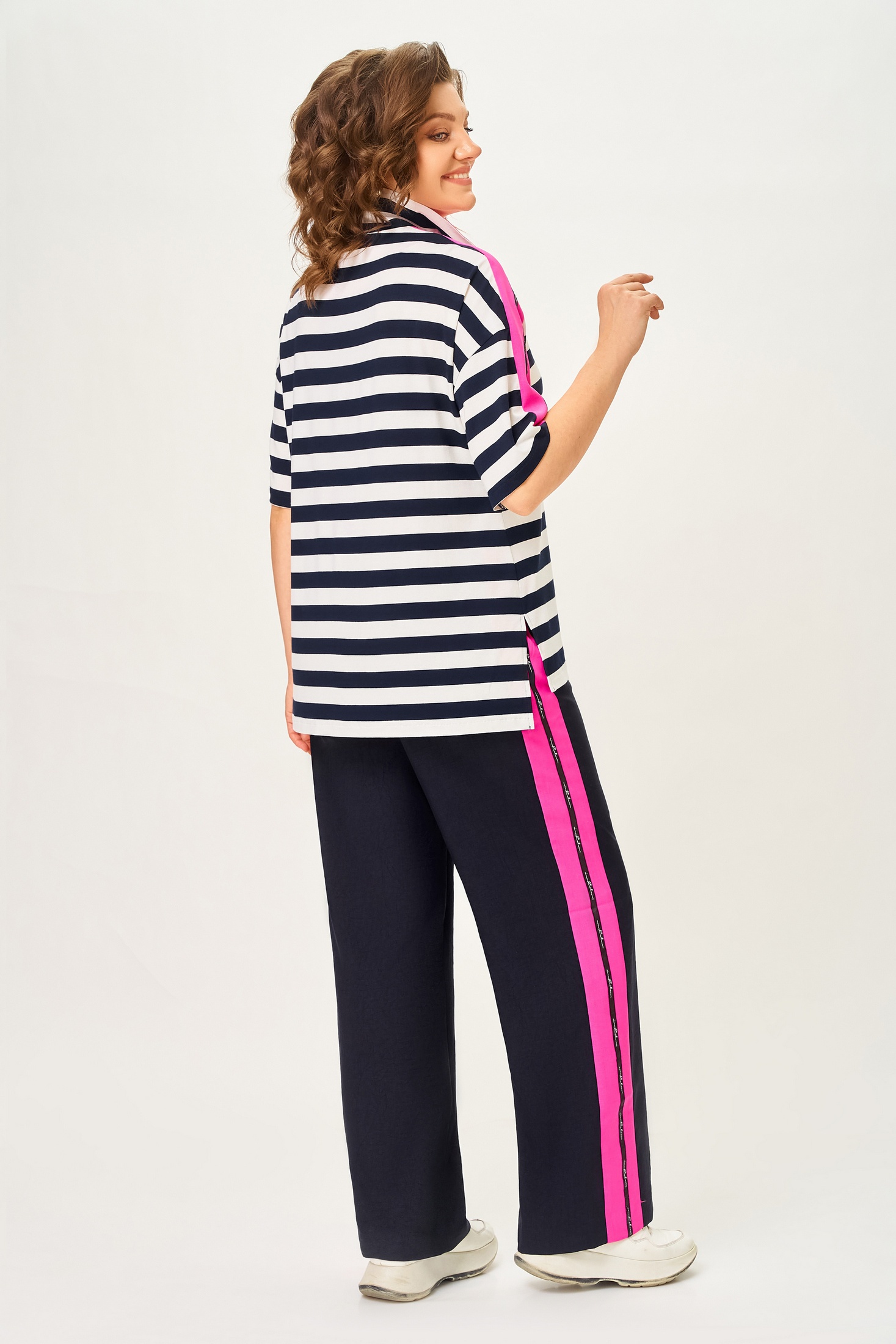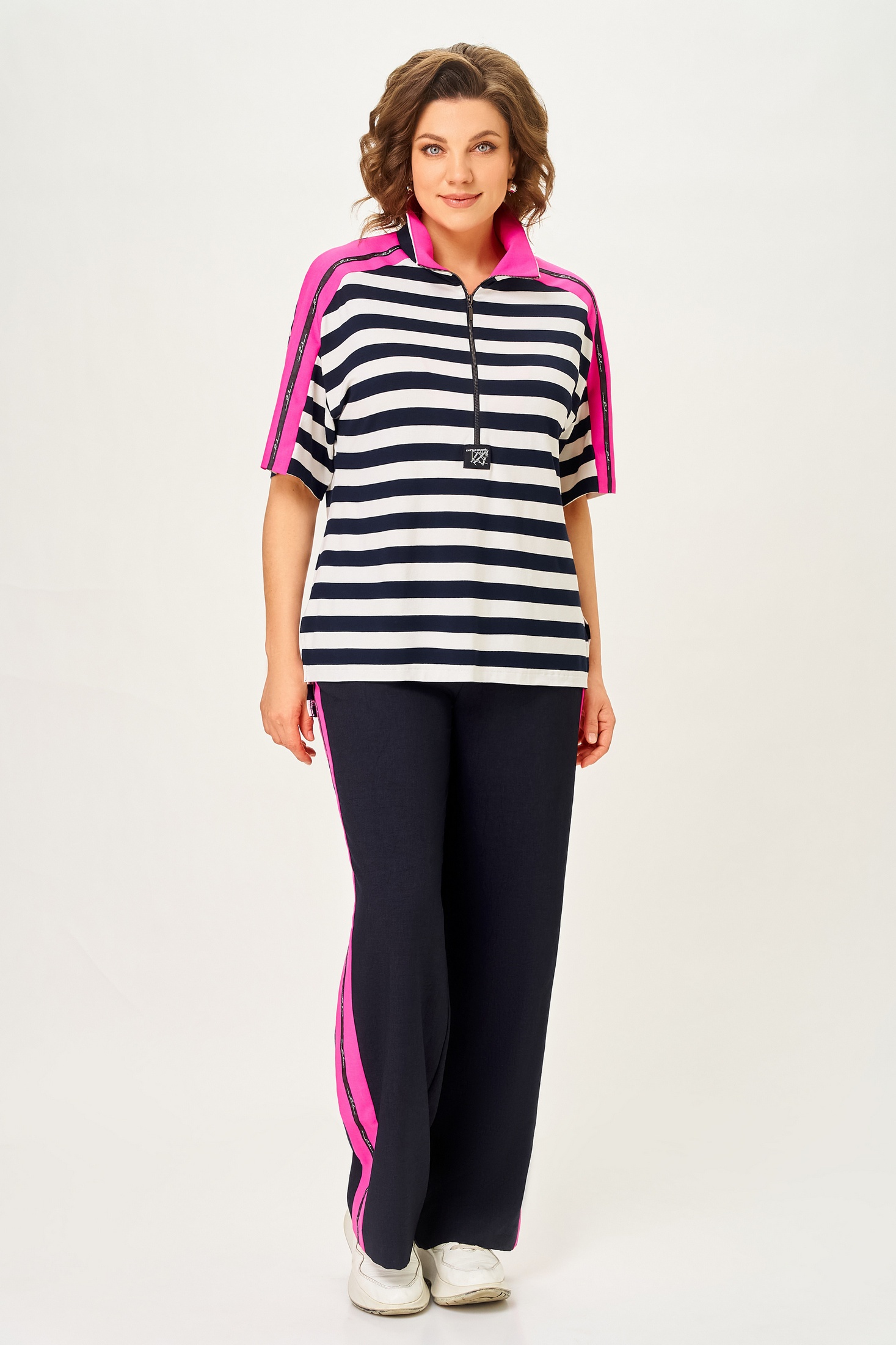 Костюм брючный 7042-2 синий с розовым Дали — это стильный и удобный комплект, созданный для яркого повседневного образа. Коллекция бренда Дали предлагает уникальный дизайн с синими брюками и розовыми полосками. Изготовлен из качественных материалов: верх выполнен из 100% хлопка, обеспечивающего мягкость и комфорт, брюки из смеси льна, вискозы и полиэстера, что делает их легкими и дышащими. Длинные рукава и свободный крой делают этот костюм идеальным для теплых летних и весенних дней. Полоска на ткани и контрастные цвета добавляют динамичности и подходят для прогулок и активного отдыха.