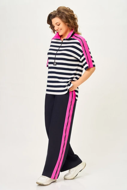 Костюм брючный 7042-2 синий с розовым Дали
