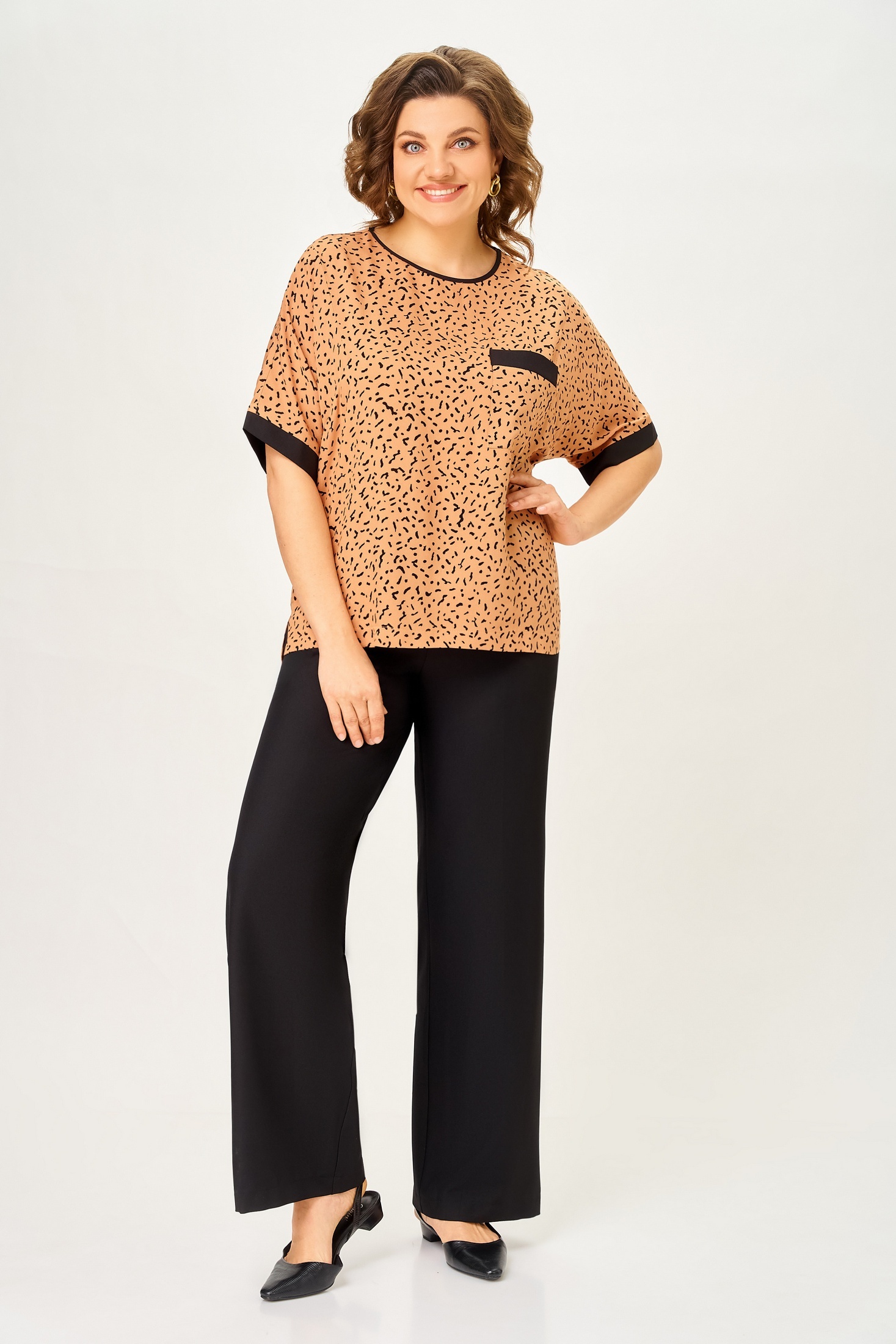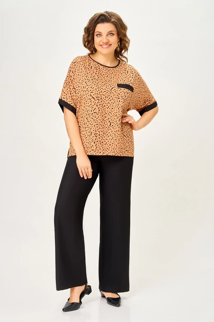 Костюм брючный 7044-2 капучино Дали из коллекции бренда Дали — это стильный выбор для разнообразных поводов. Выполненный из 100% вискозы, он обеспечивает комфорт и лёгкость на протяжении длительного времени. Дизайн костюма включает топ с геометрическим принтом и классические брючные штаны, что делает его идеальным как для офисного стиля, так и для повседневных выходов. Цвет капучино гармонично сочетается с чёрными элементами, создавая эффектный контраст. Костюм подойдёт для любого сезона, позволяя создавать актуальные образы благодаря универсальному стилю и цветовой палитре.