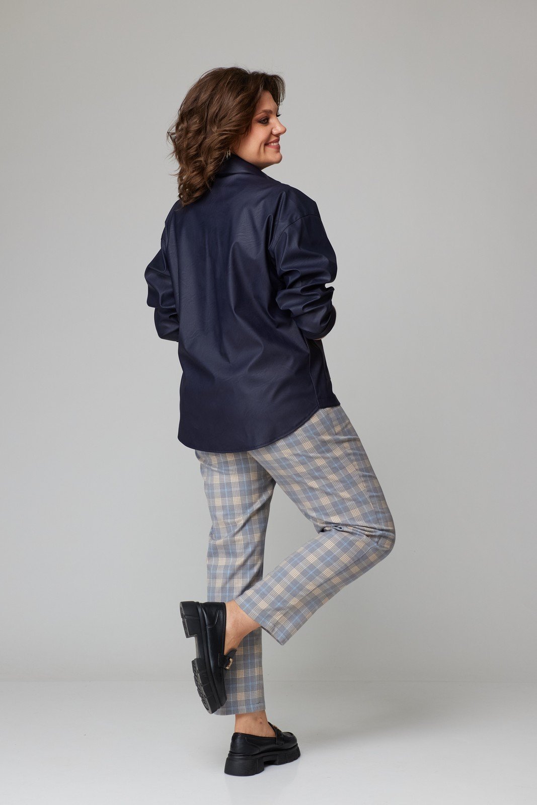 Модный комплект нового сезона: кожаная рубашка и брюки. Кожаная рубашка, выполнена из высококачественной эко-кожи на вискозной основе, прямого свободного силуэта. Низ изделия фигурный, спинка по отношению к переду слегка удлинена. По переду центральная застежка на кнопки и накладные карманы с клапанами. Горловина округлая с втачным воротником-стойкой рубашечного типа. Спинка цельная, линия плеча приспущена. Рукав втачной длинный, по низу рукава расположены шлёвки с декоративной завязкой, которая позволяет фиксировать нужный объём . Брюки прямые, свободного силуэта, немного заужены к низу с классической посадкой на талию, по переду застежка гульфик на молнию. Пояс притачной с застежкой на петлю-пуговицу, по задней части частично вставлена эластичная тесьма-резинка, по всей длине пояса расположены шлевки. На передних половинах выполнены наклонные карманы от боковых швов, на задних частях брюк имитация карманов в виде декоративных листочек. Эффектный стильный костюм весьма многофункционален так как отлично будет сочетаться и с другими предметами гардероба.