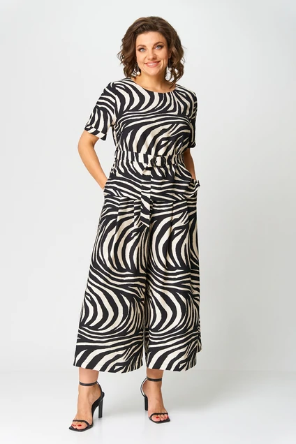 Одежда из натуральных тканей – фаворит летних коллекций. Она идеально подходит для жаркой погоды: ткань хорошо вентилируется, впитывает влагу, всегда остается чуть прохладным на ощупь. Наш костюм выполнен из 100% вискозы. Изделие приятно к телу, не вызывает раздражения. Лаконичная блузка прямого свободного силуэта, рукав короткий втачной с отворотом. Горловина округлая на обтачке. Сдержанный стиль обыгрывается эффектными декоративными элементами: боковыми разрезами и стильным ремнем ,который подчеркивает силуэт фигуры. Юбка-брюки – ближайший «родственник» кюлотов. Обилие ткани, использованное для пошива таких брюк, создает иллюзию юбки, что очень нравится модницам – одновременно удобно и красиво. Летящий силуэт и мягкие драпировки выглядят грациозно и романтично и скрадывают недостатки фигуры. Внешне они