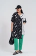 Комплект женский двухпредметный. Туника свободного покроя из легкой вискозной ткани двух цветов. Вырез горловины V-образный с имитацией запаха. Рукава- отрезные на базе спущенного. По переду слева накладной карман. Низ асимметричный с шлицами по переду и спинке. Длина по спинке - 118 см, длина рукава от горловины - 47 см. Брюки свободного покроя, зауженные к низу. В боковых швах - карманы с отрезными бочками. Пояс- отрезной с эластичной тесьмой. Длина от линии талии с учетом пояса - 98 см. Блуза: Вискоза-100%.