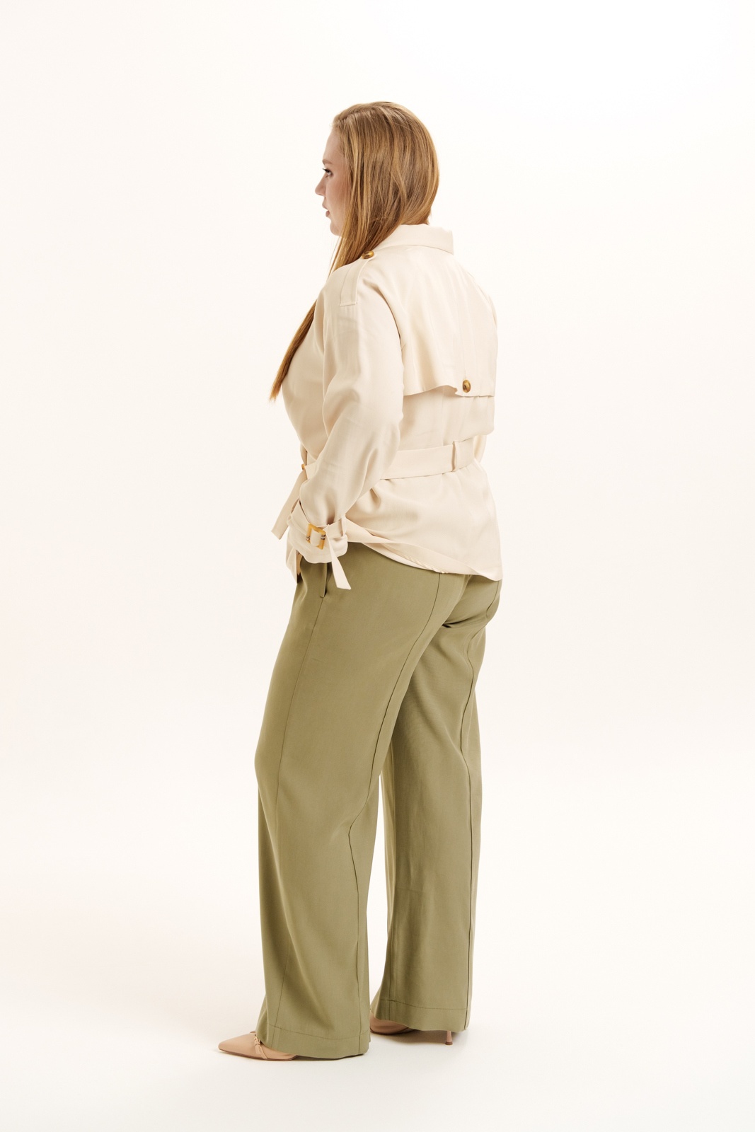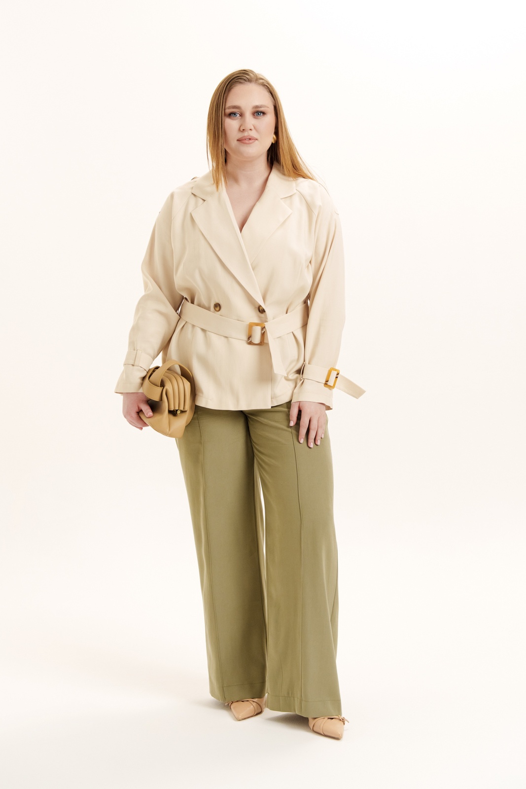 Костюм брючный 2437 Deesses от коллекции бренда Deesses — это стильное решение для повседневного и офисного образа. Выполнен из ткани тенсел с добавлением полиэстера и эластана, что обеспечивает комфорт и сохранение формы. Жакет прямого силуэта с отлетной кокеткой и двубортной застежкой на пуговицы подчеркнет вашу деловитость. Рукав реглан и съёмный пояс добавляют универсальности. Брюки с декоративной строчкой по стрелкам и карманы в боковых швах улучшают функциональность костюма. Подходит для весенне-летнего сезона. Цветовая гамма сочетает бежевый жакет и зеленые брюки, создавая гармоничный образ. Отделочная фурнитура может меняться.